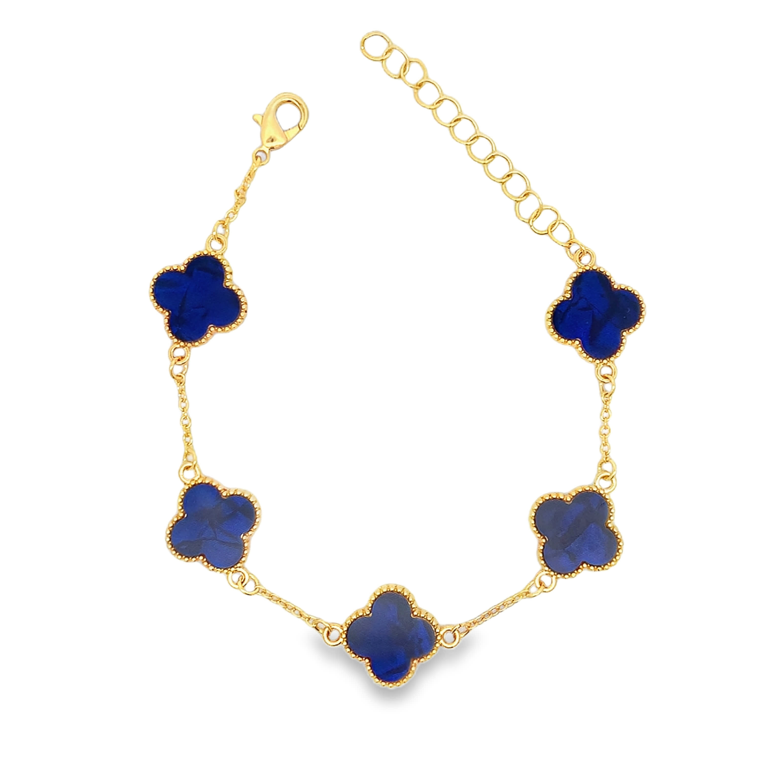 Star-Carved Lapis Lazuli Yellow Gold Chain Bracelet