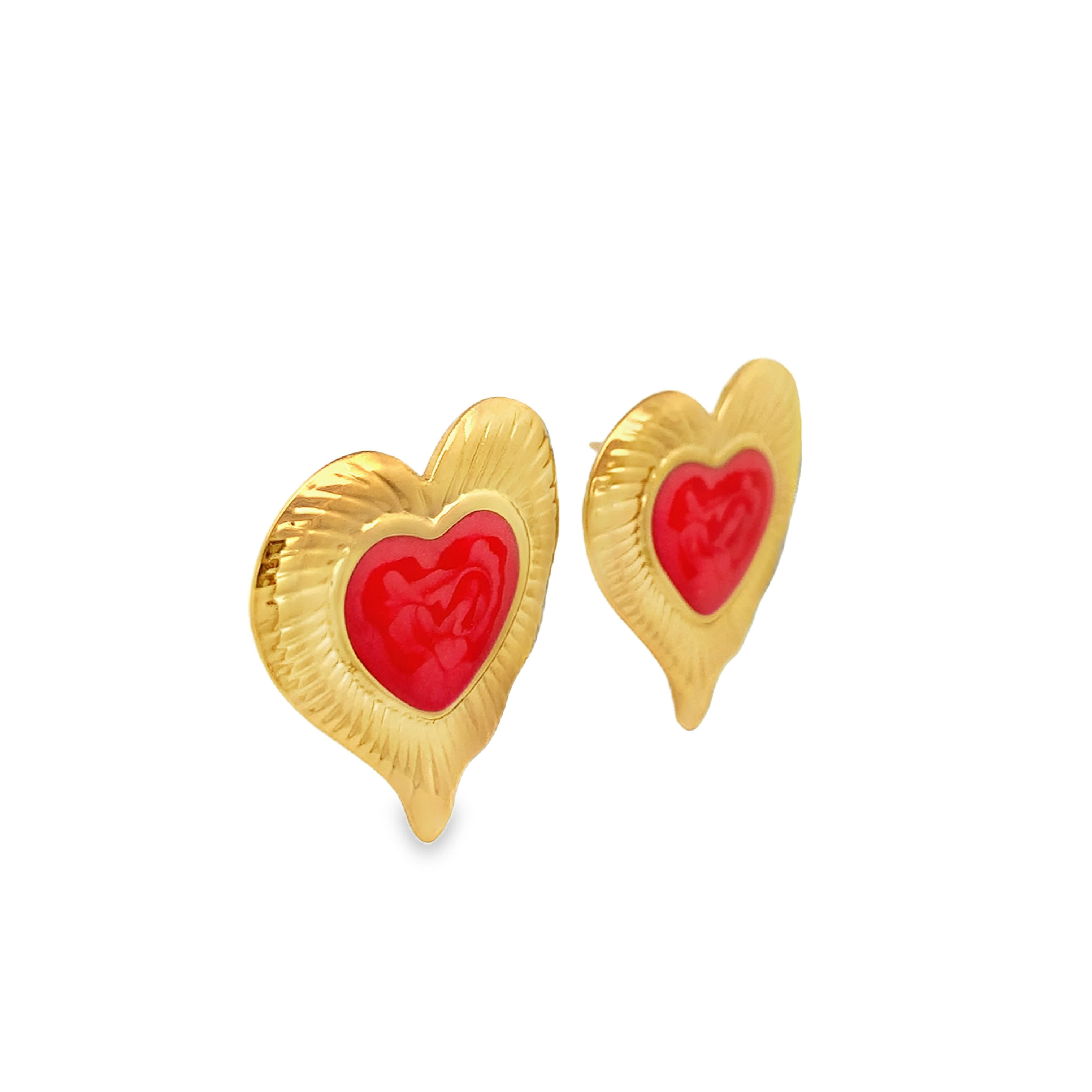 Heart Shaped Ruby Cabochon Stud Earrings in Yellow Gold