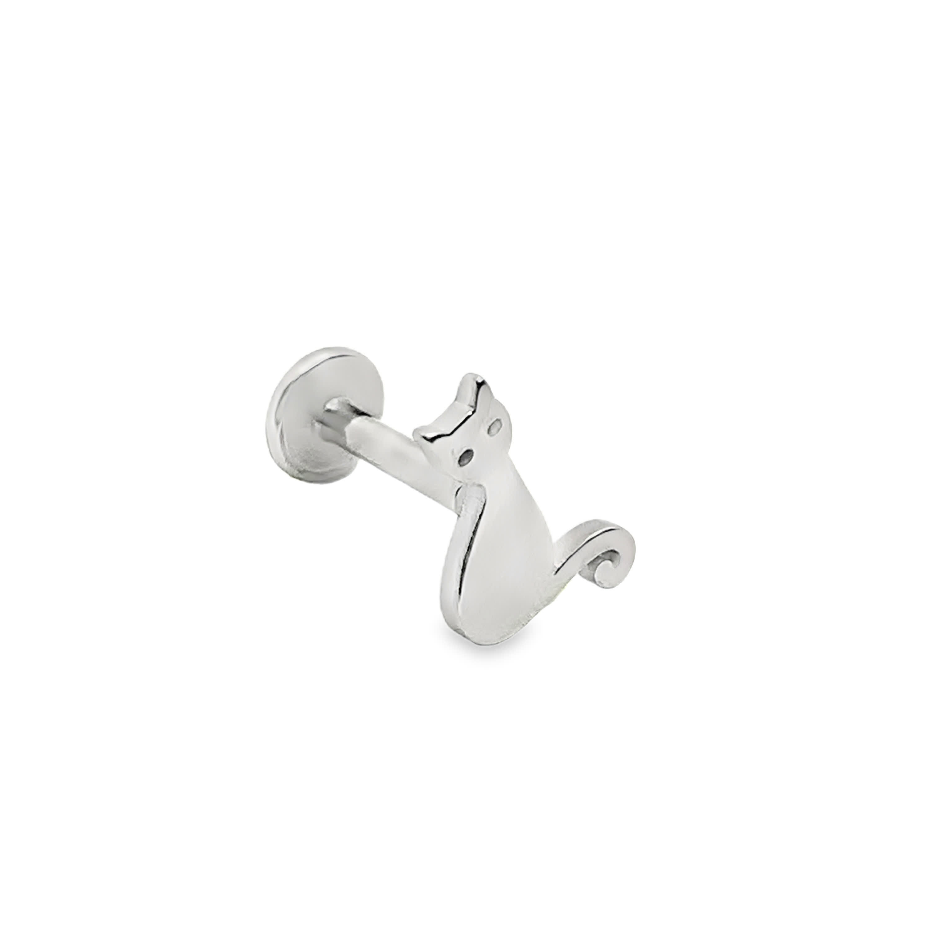 Polerowany kolczyk sztyft siedzący kot ze srebra próby 925