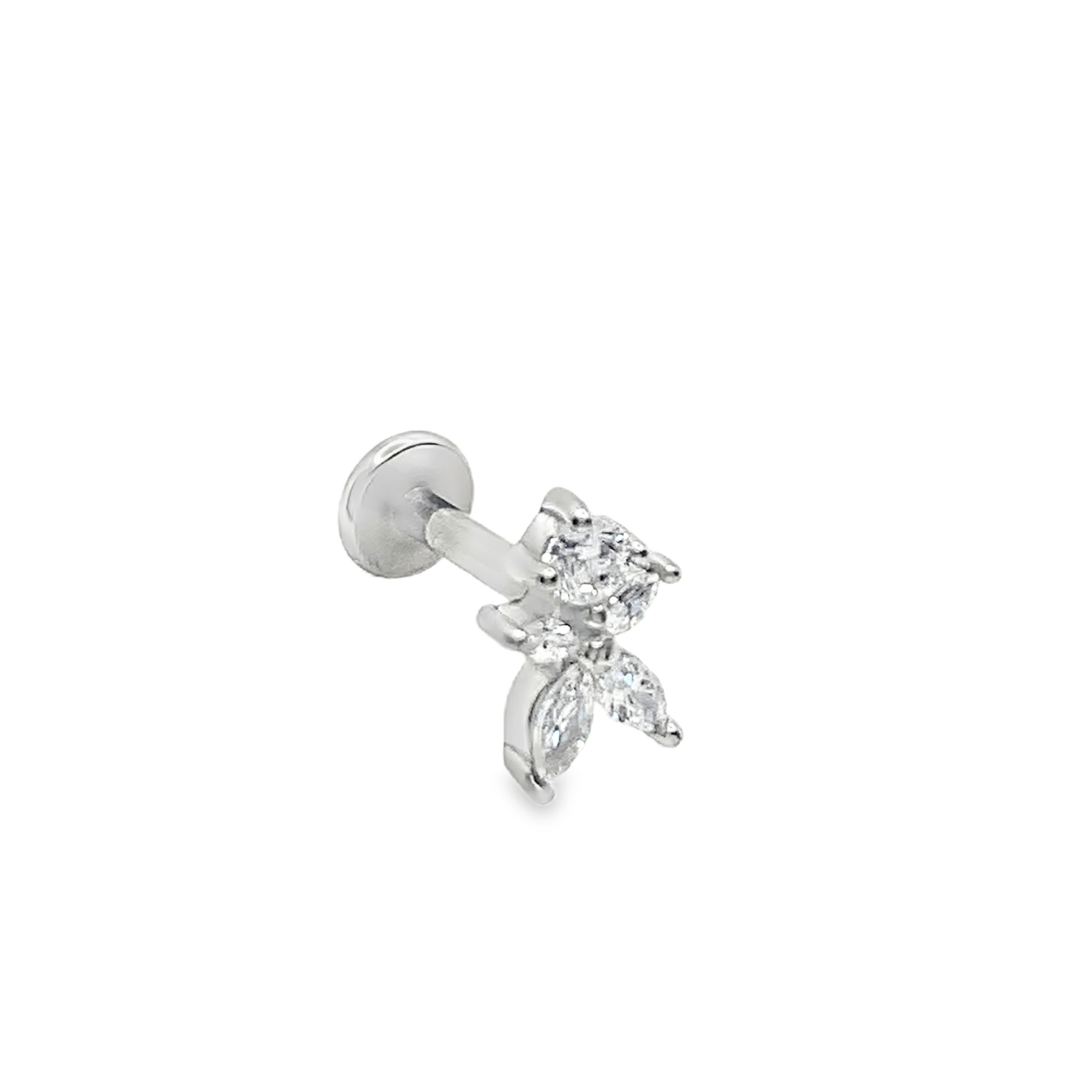 Posrebrzany labret z klastrem kwiatowym z kamieniami marquise i okrągłymi