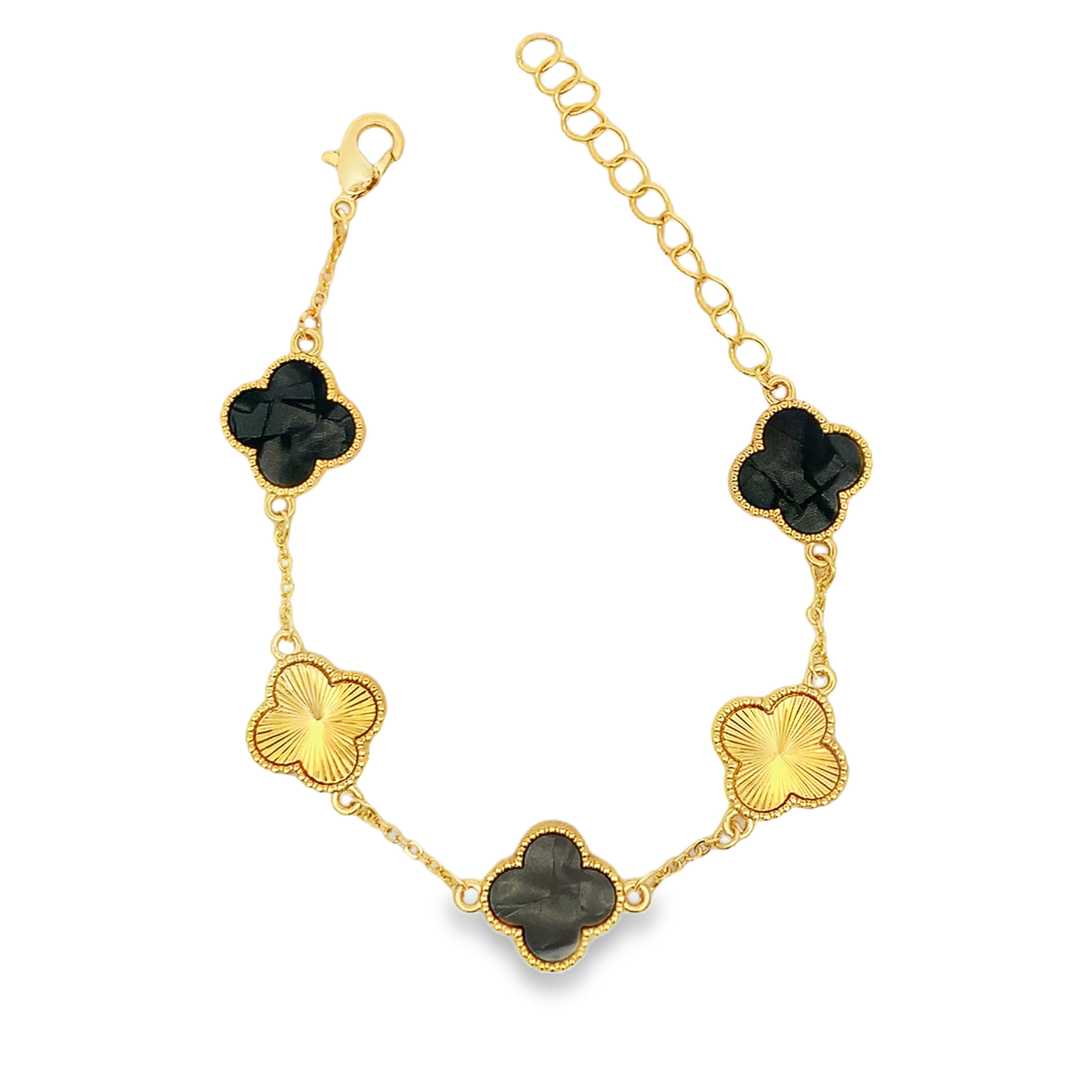 Guilloch) Gold and Carved Onyx Clover Station Bracelet