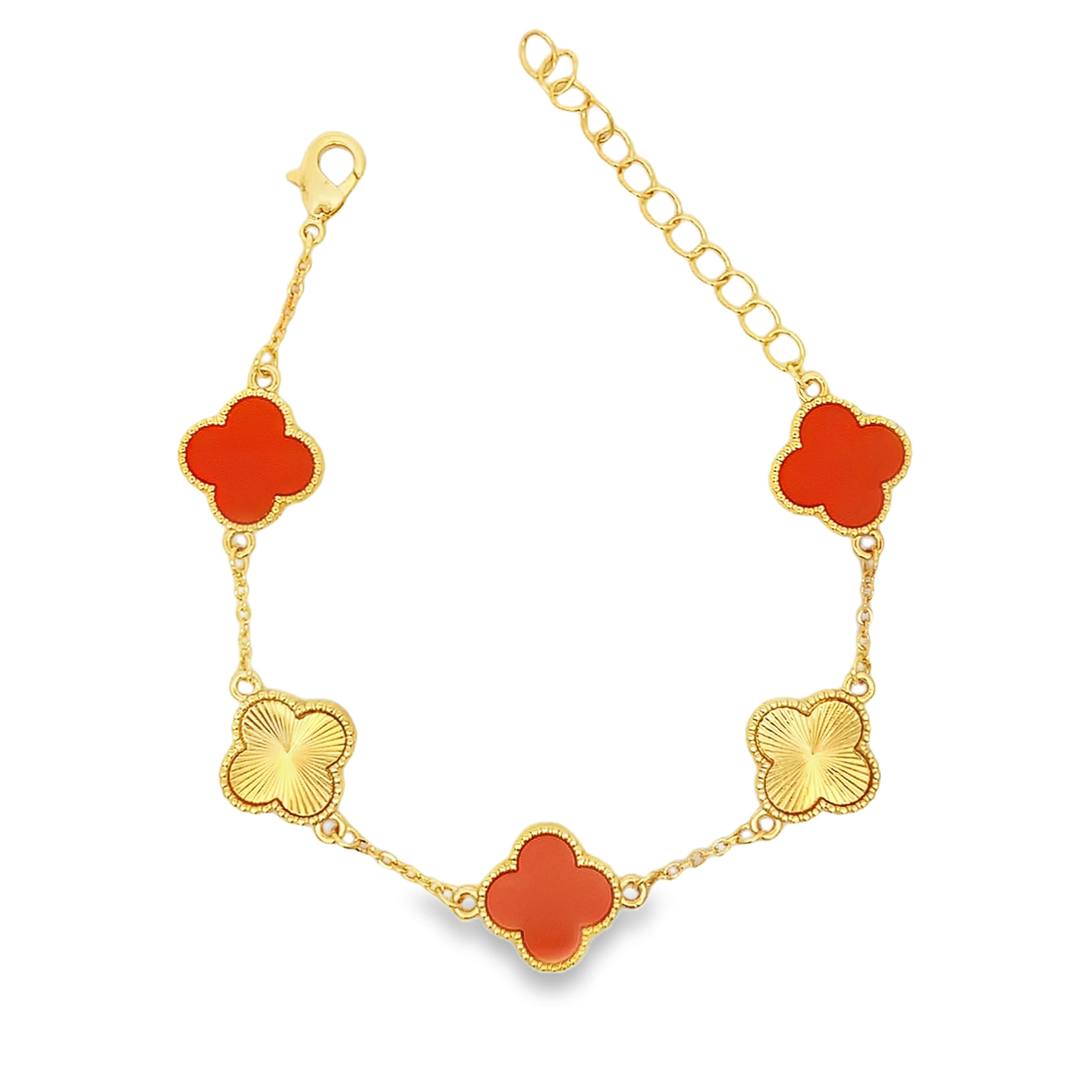 Yellow Gold Agate and Guilloche Quatrefoil Station Bracelet