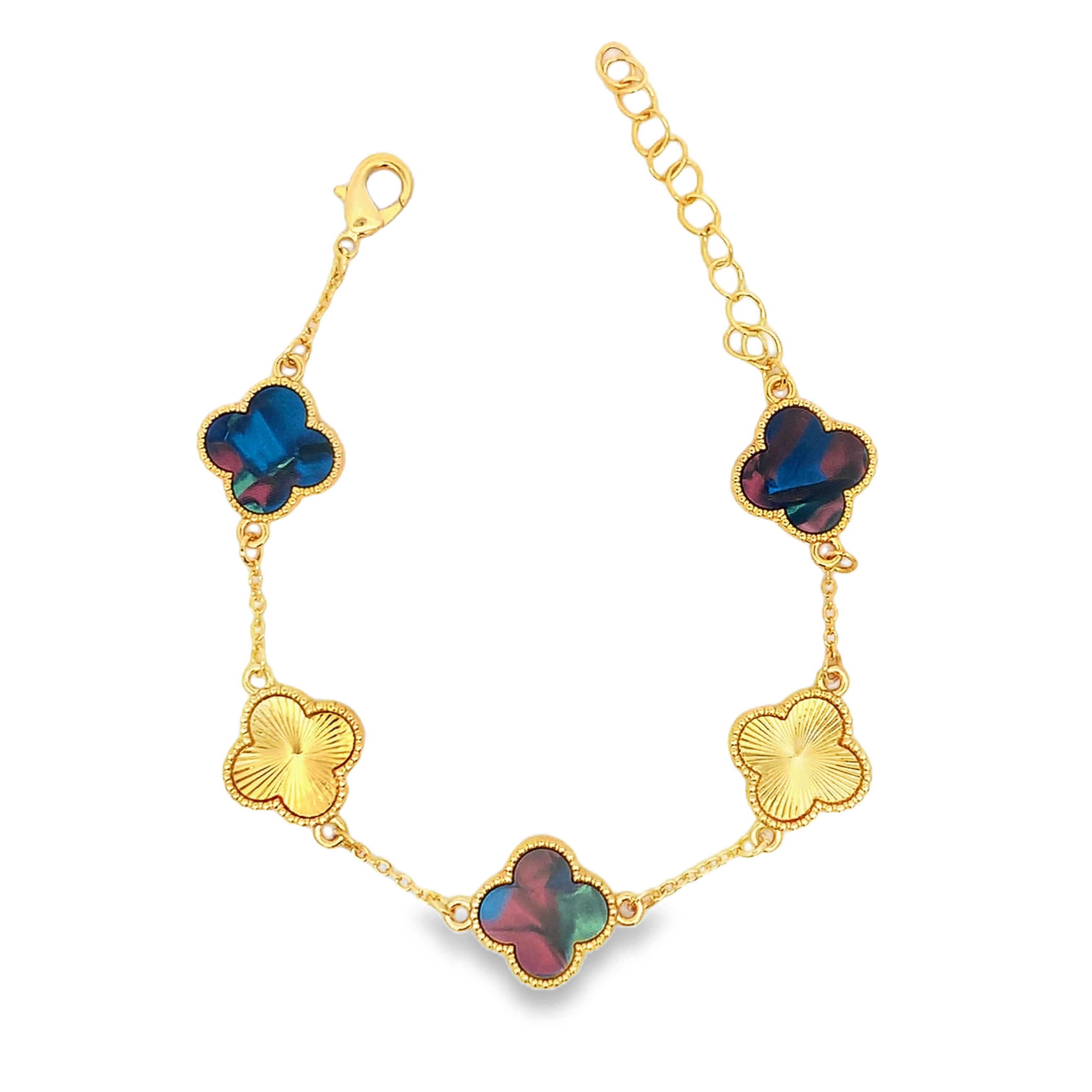 Bicolor Agate and Sunburst Gold Clover Motif Chain Bracelet