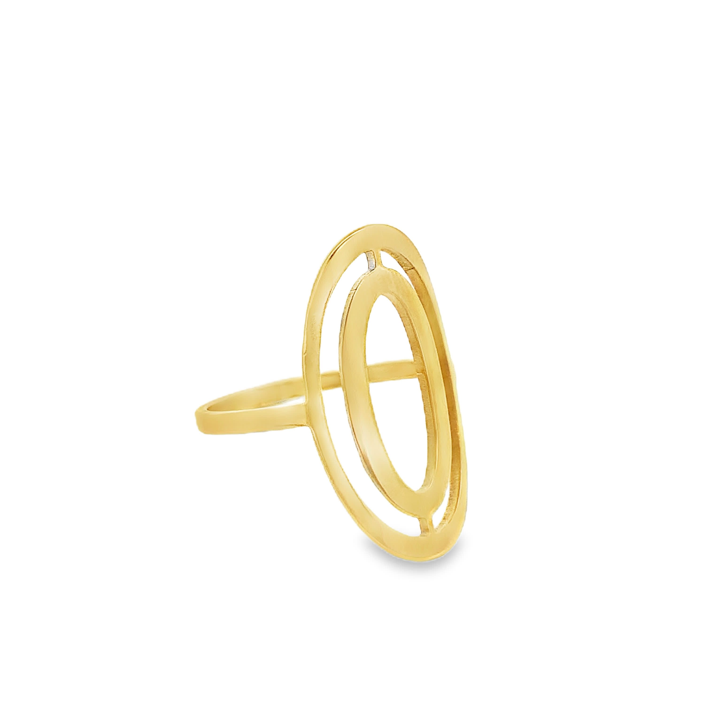 Minimalistyczny geometryczny pierścionek z koncentrycznymi owalami ze złota żółtego