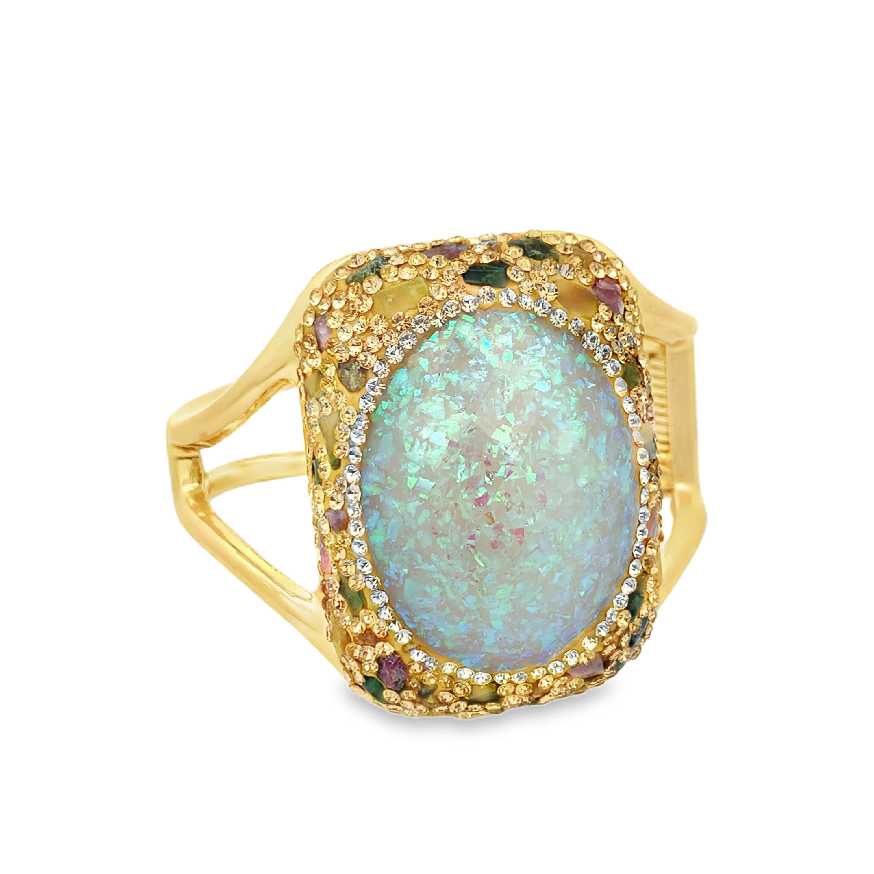 Yellow Gold Bangle Featuring an Oval Cabochon Opal