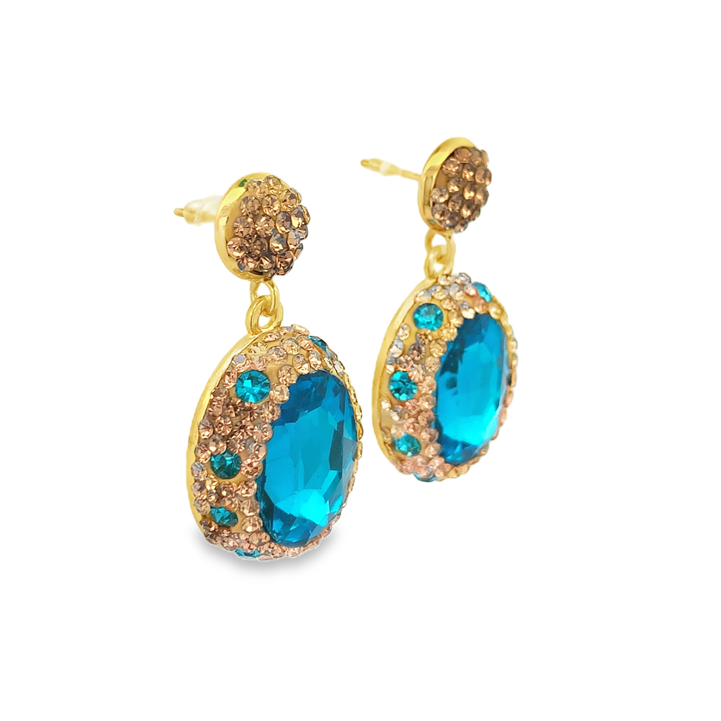 Kolczyki wiszące z pozłacanego metalu z niebieskimi kamieniami ozdobnymi