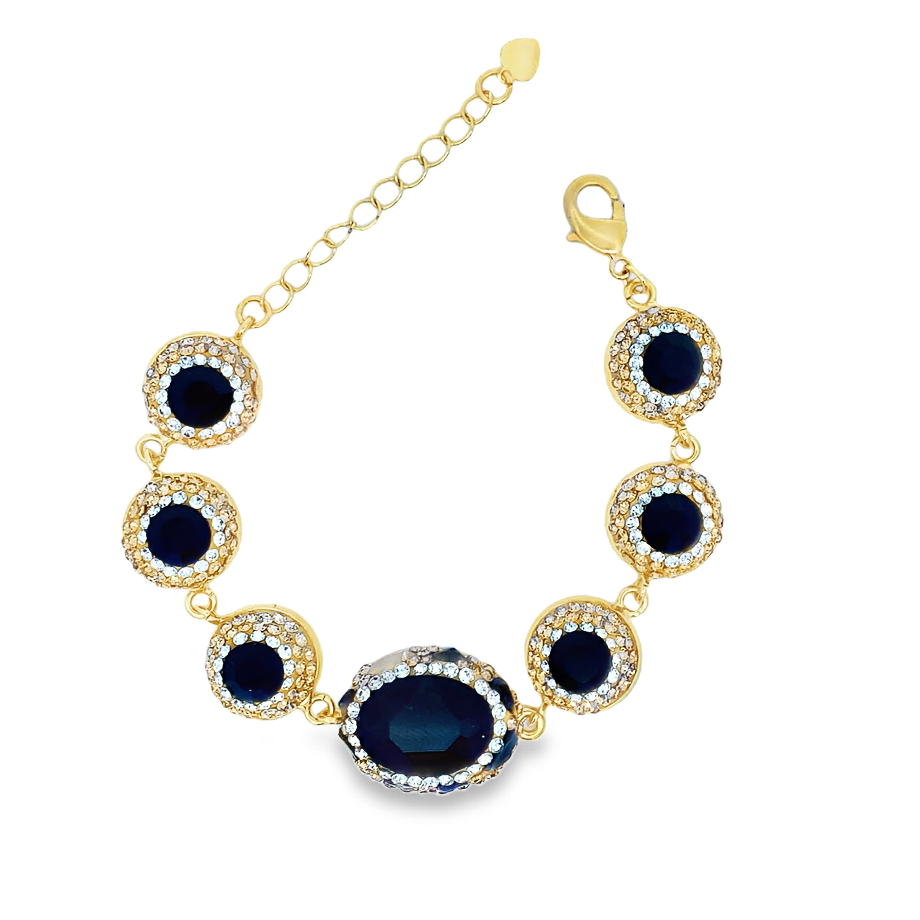 Oval Cabochon Onyx Yellow Gold Link Chain Bracelet