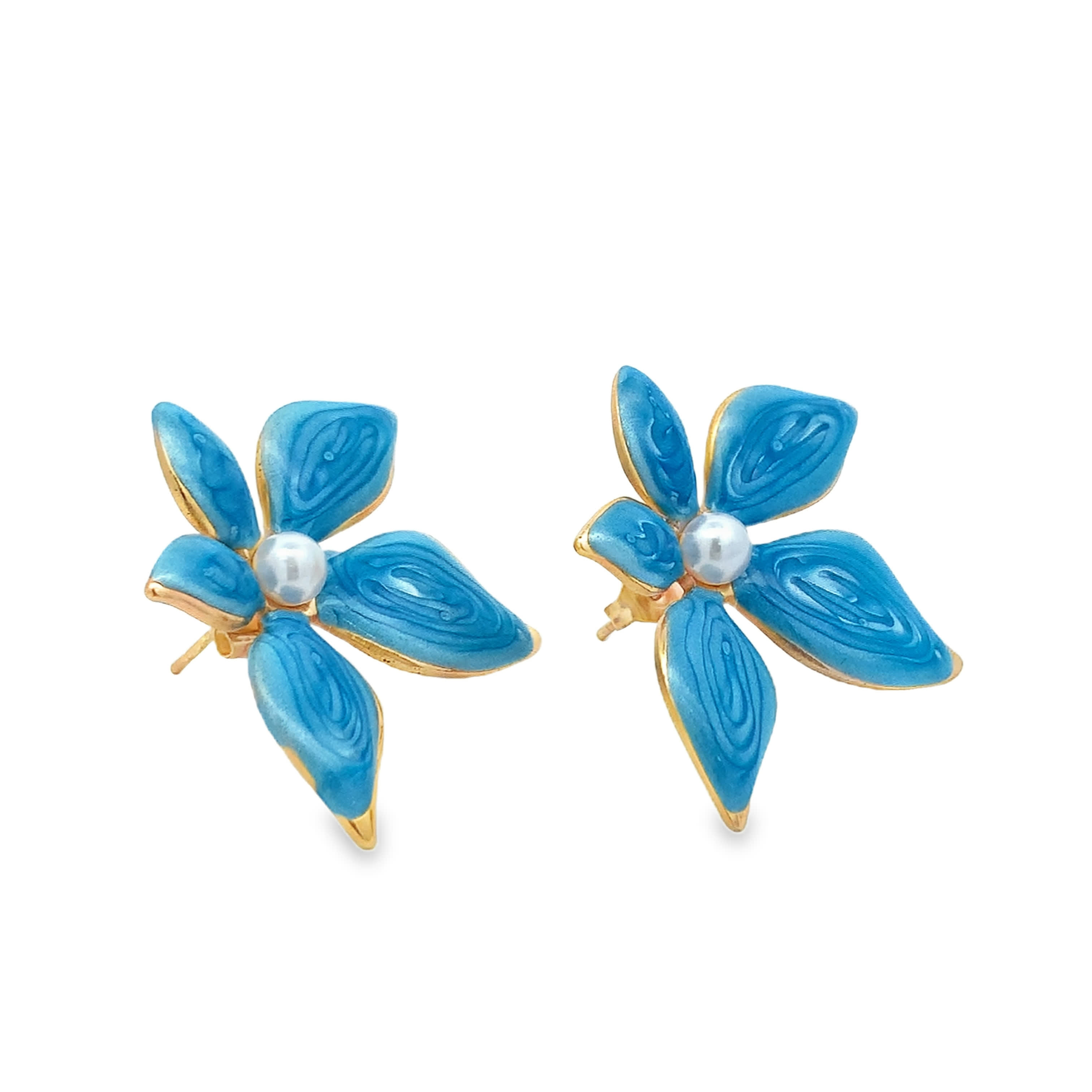 Classic Round White Pearl Stud Earrings in 14k Yellow Gold