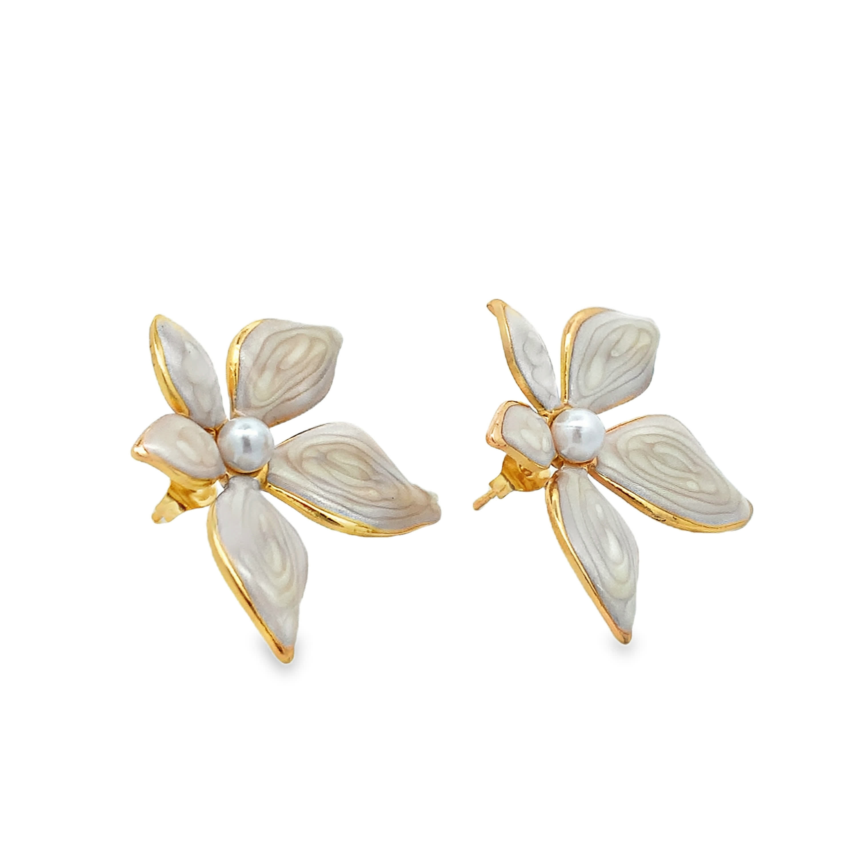 Classic Round White Pearl Stud Earrings in Polished Yellow Gold