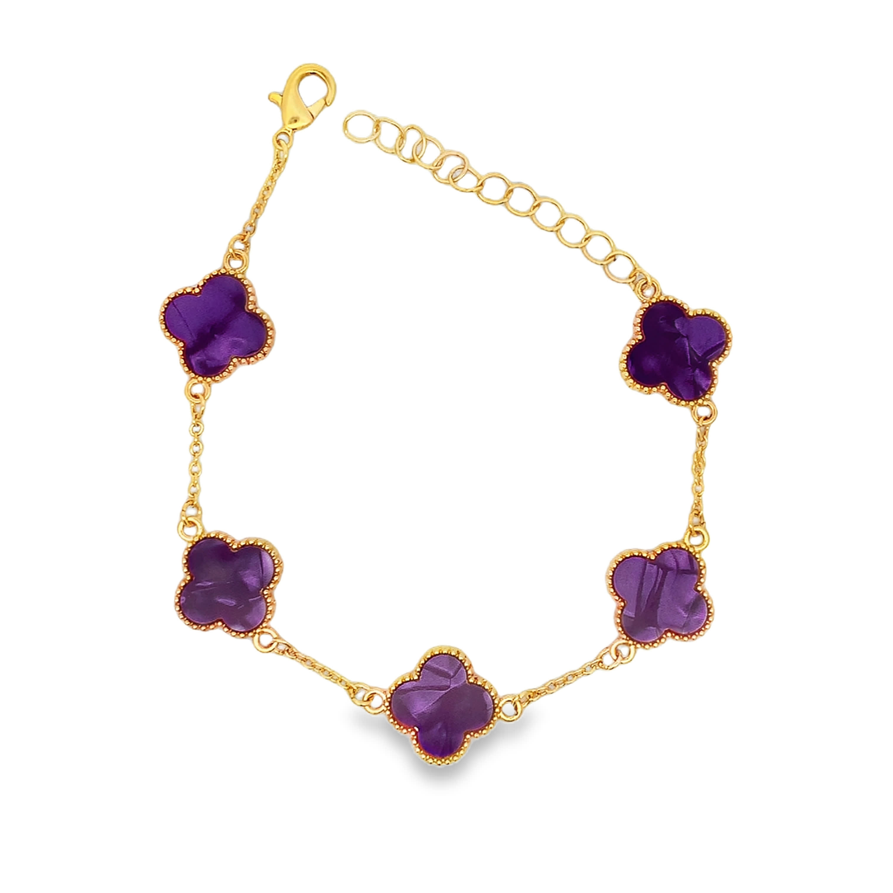 Heart Shaped Carved Amethyst Yellow Gold Chain Bracelet
