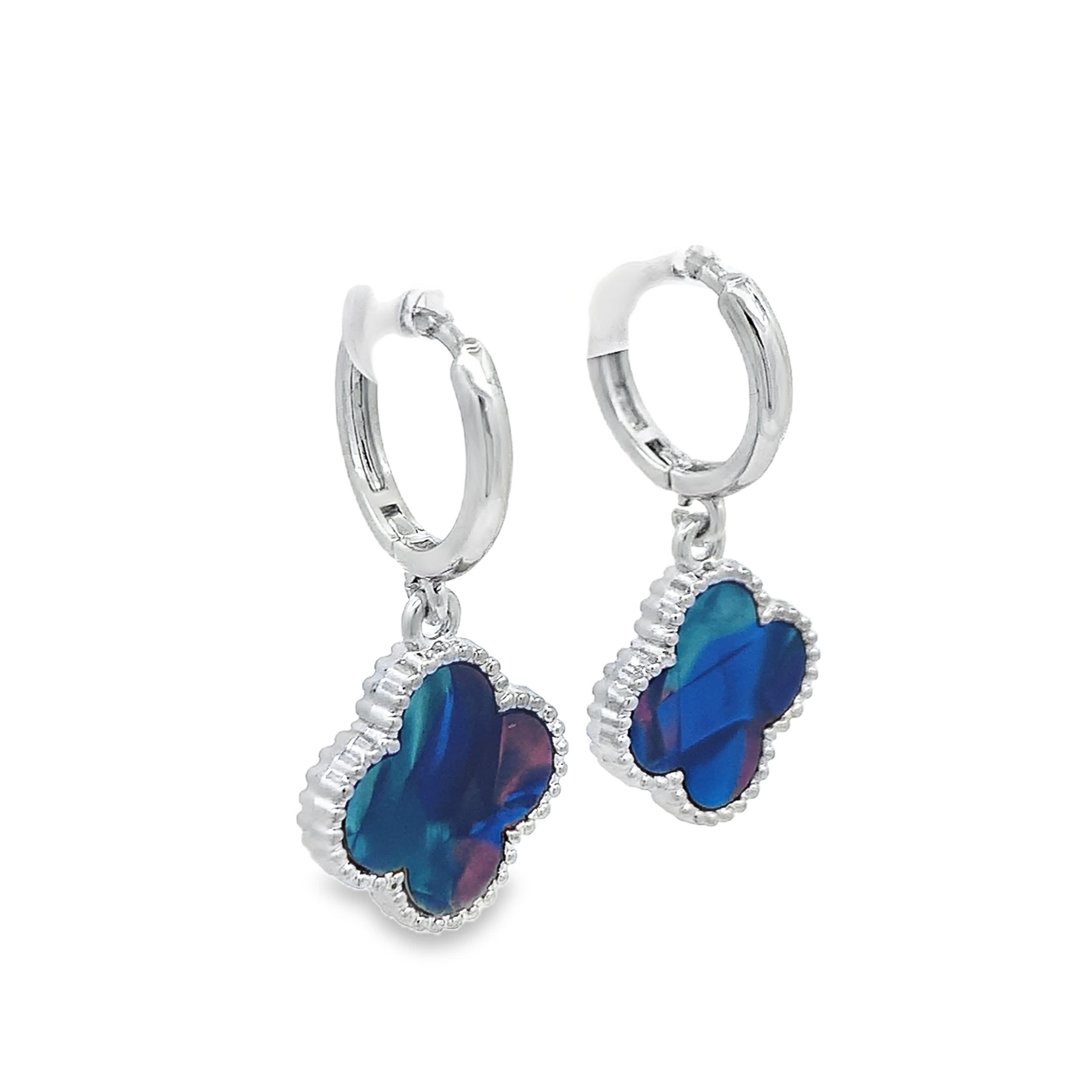Elegant Green-Blue Cabochon Quartz Drop Earrings in White Gold