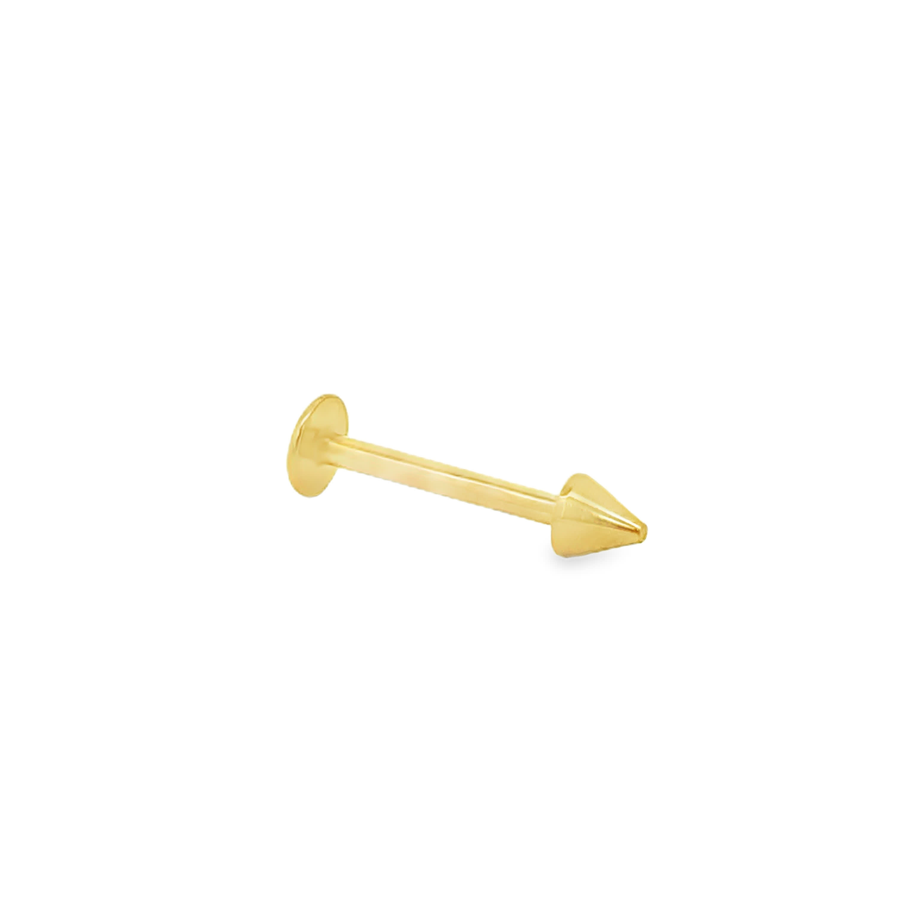 Minimalist Yellow Gold Spike Cone Flat Back Labret Stud