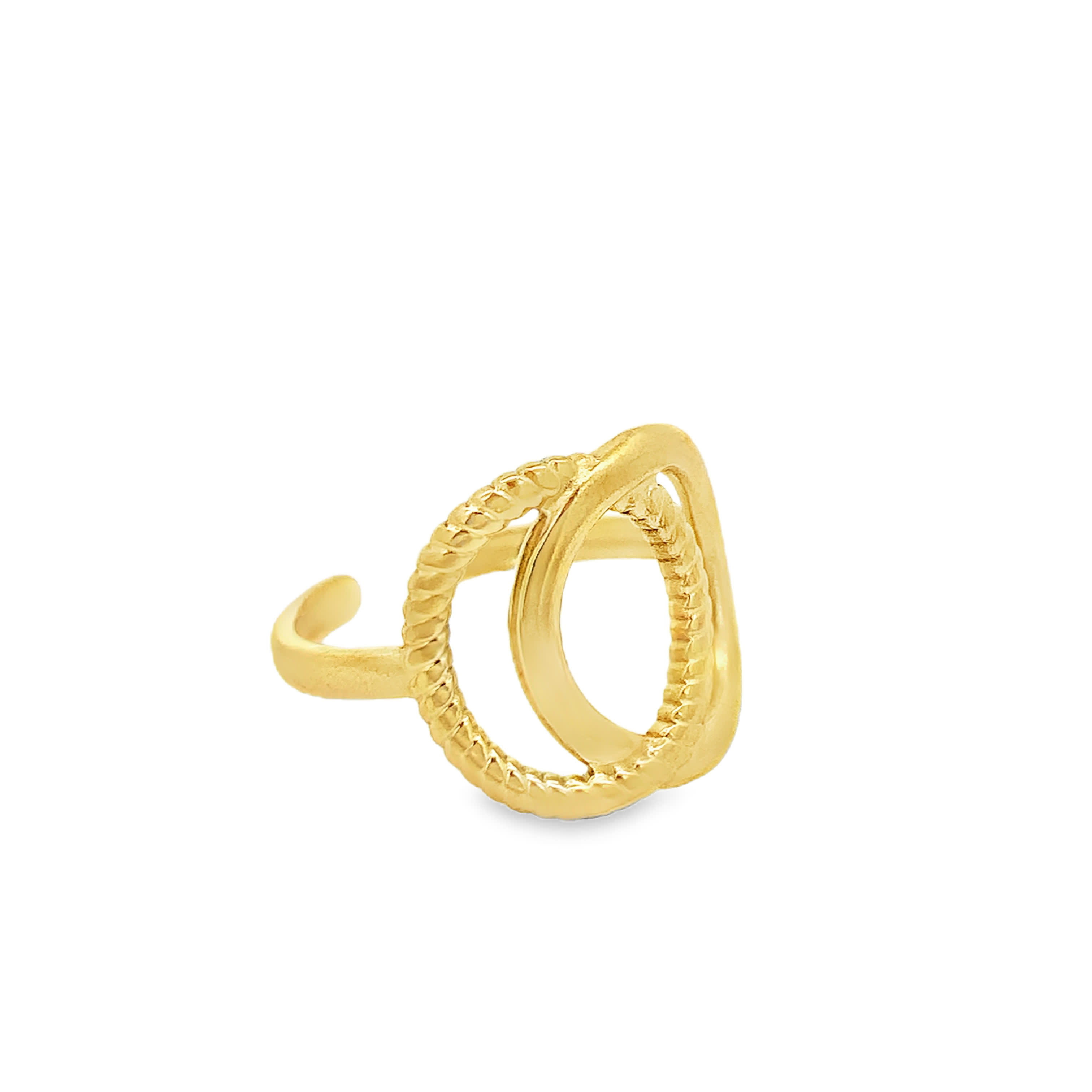 Yellow Gold Interlocking Rope and Smooth Double Circle Open Ring
