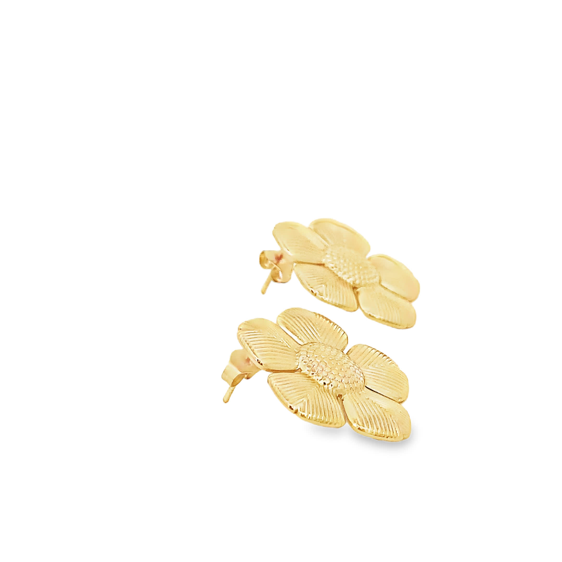 Te oszałamiające złocone kolczyki z motywem kwiatowym to idealny dodatek na każdą okazję. Ich misterny design oddaje piękno natury, dzięki czemu są wyjątkowym dodatkiem do Twojej kolekcji biżuterii. Noś je, aby podnieść swój codzienny wygląd lub dodać odrobinę elegancji do wieczorowego stroju.