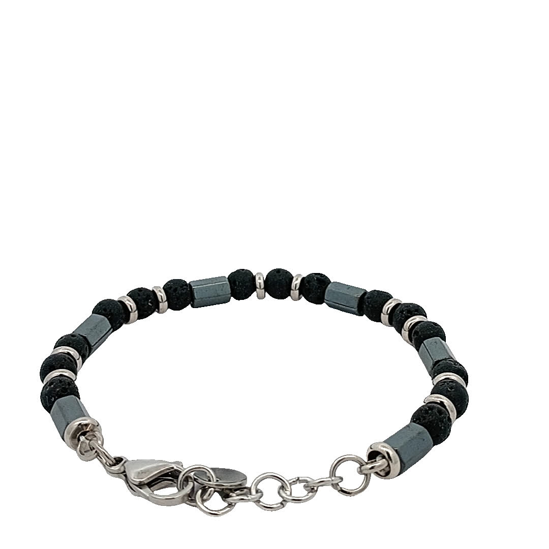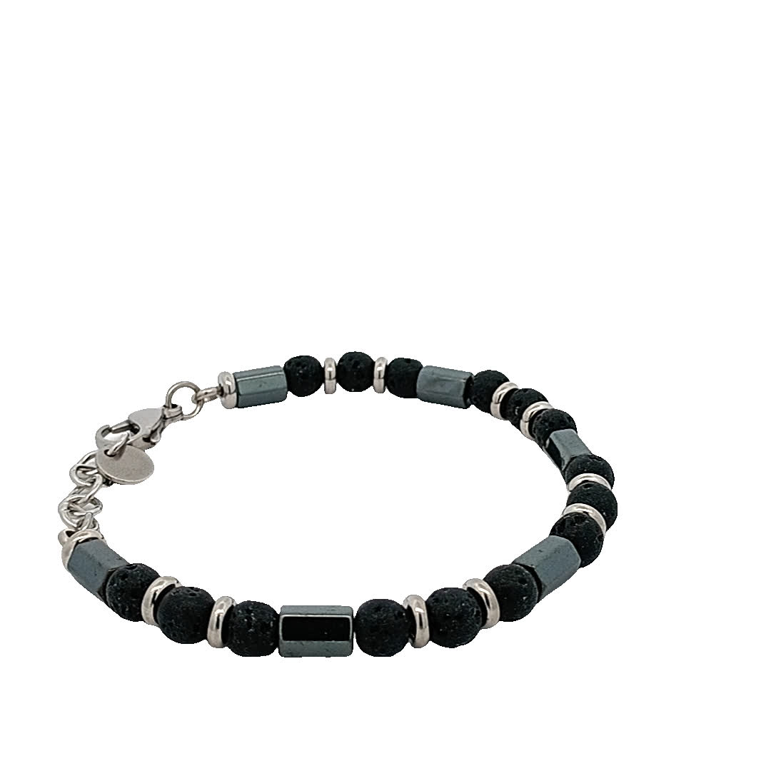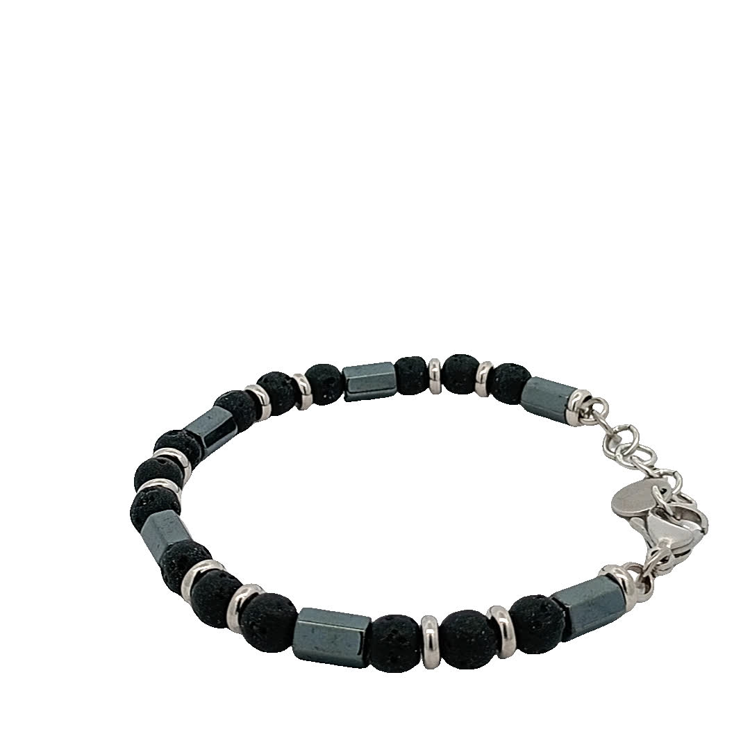 Ta oszałamiająca czarna bransoletka z koralików to harmonijne połączenie teksturowanych kamieni i eleganckich posrebrzanych akcentów. Idealna zarówno na okazje codzienne, jak i formalne, dodaje odrobinę wyrafinowania do każdego stroju. Regulowane zapięcie zapewnia wygodne dopasowanie do wszystkich rozmiarów nadgarstków.