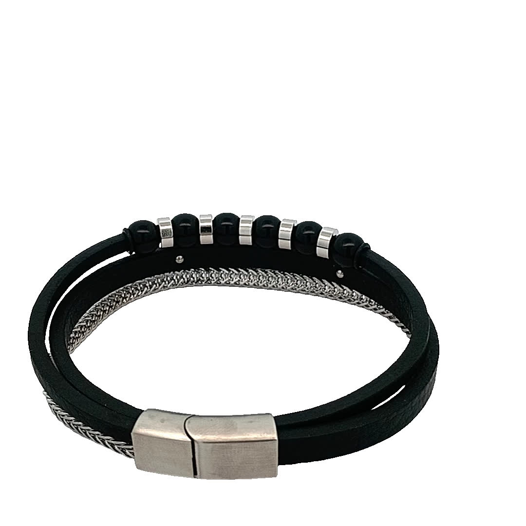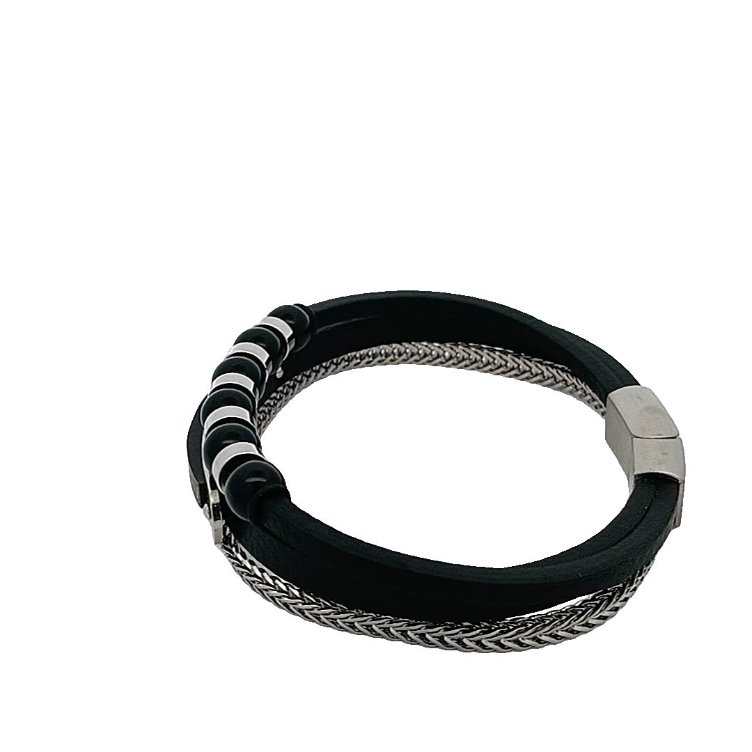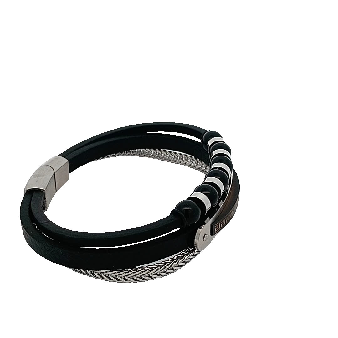 Podnieś poziom swoich dodatków dzięki tej stylowej czarno-srebrnej bransoletce. Dzięki unikalnej mieszance materiałów, w tym eleganckiej skóry i polerowanego metalu, doda odrobinę wyrafinowania każdej stylizacji. Idealna zarówno na okazje codzienne, jak i formalne, ta bransoletka jest koniecznością dla tych, którzy cenią nowoczesny design.