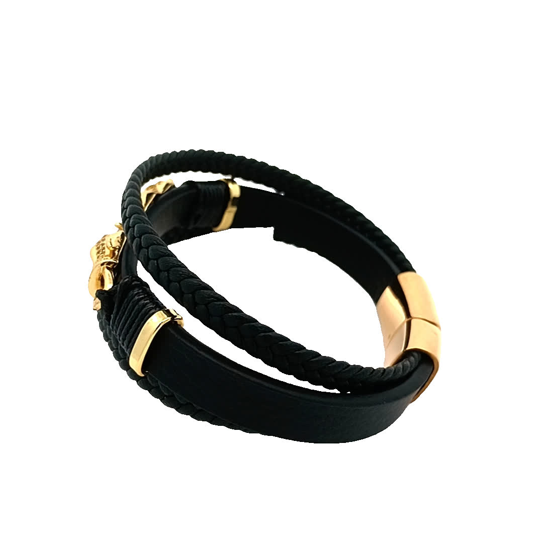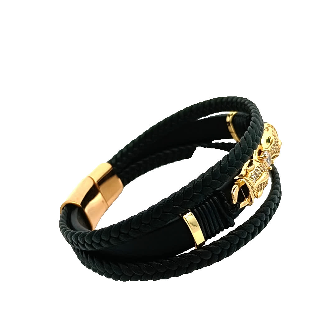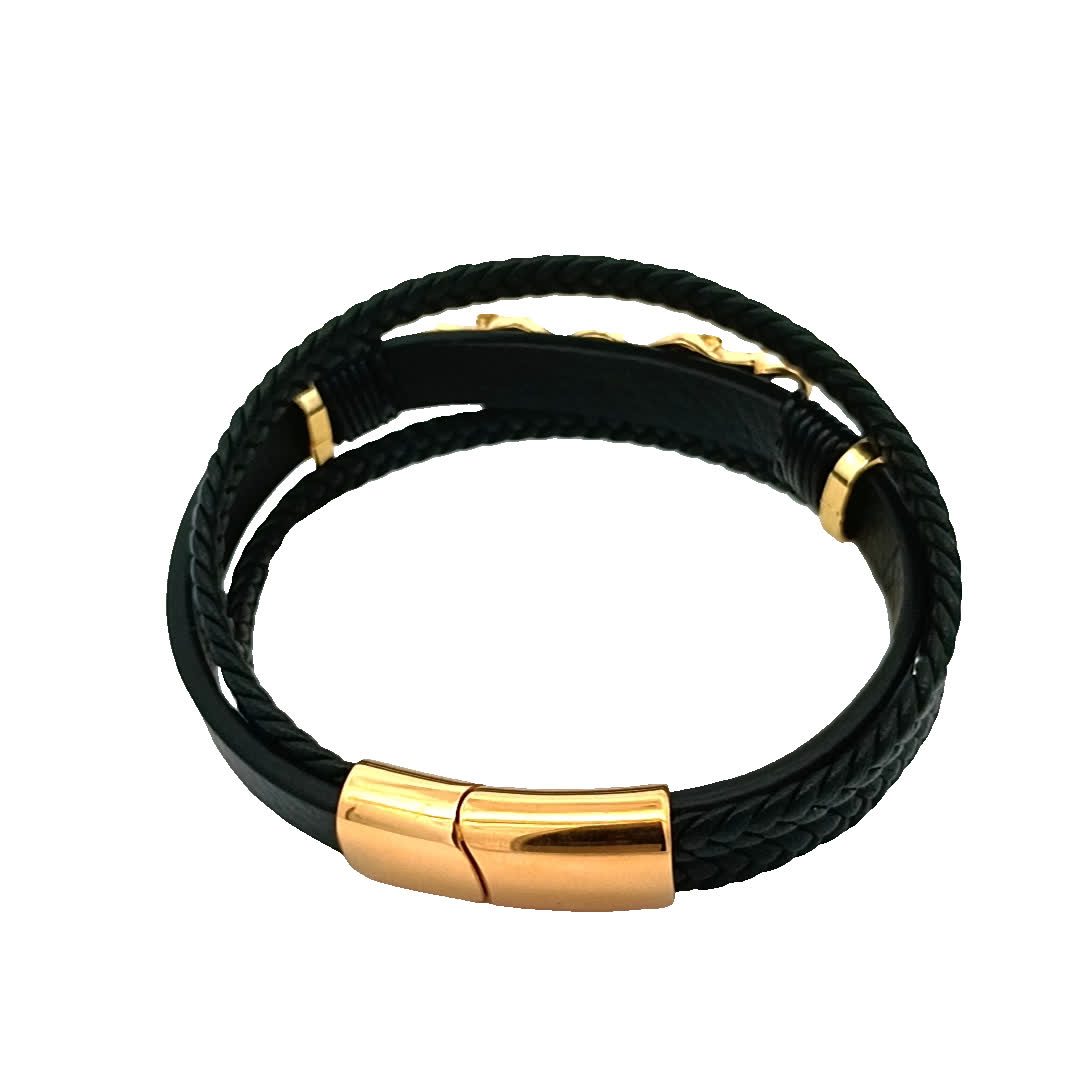 Ta oszałamiająca czarno-złocona bransoletka łączy elegancję z nowoczesnym akcentem. Misterny pleciony wzór uzupełnia efektowny złocony element centralny ozdobiony błyszczącymi akcentami, dzięki czemu jest idealnym dodatkiem na każdą okazję. Noś ją samodzielnie lub zestaw z innymi bransoletkami, aby uzyskać modny, warstwowy wygląd.