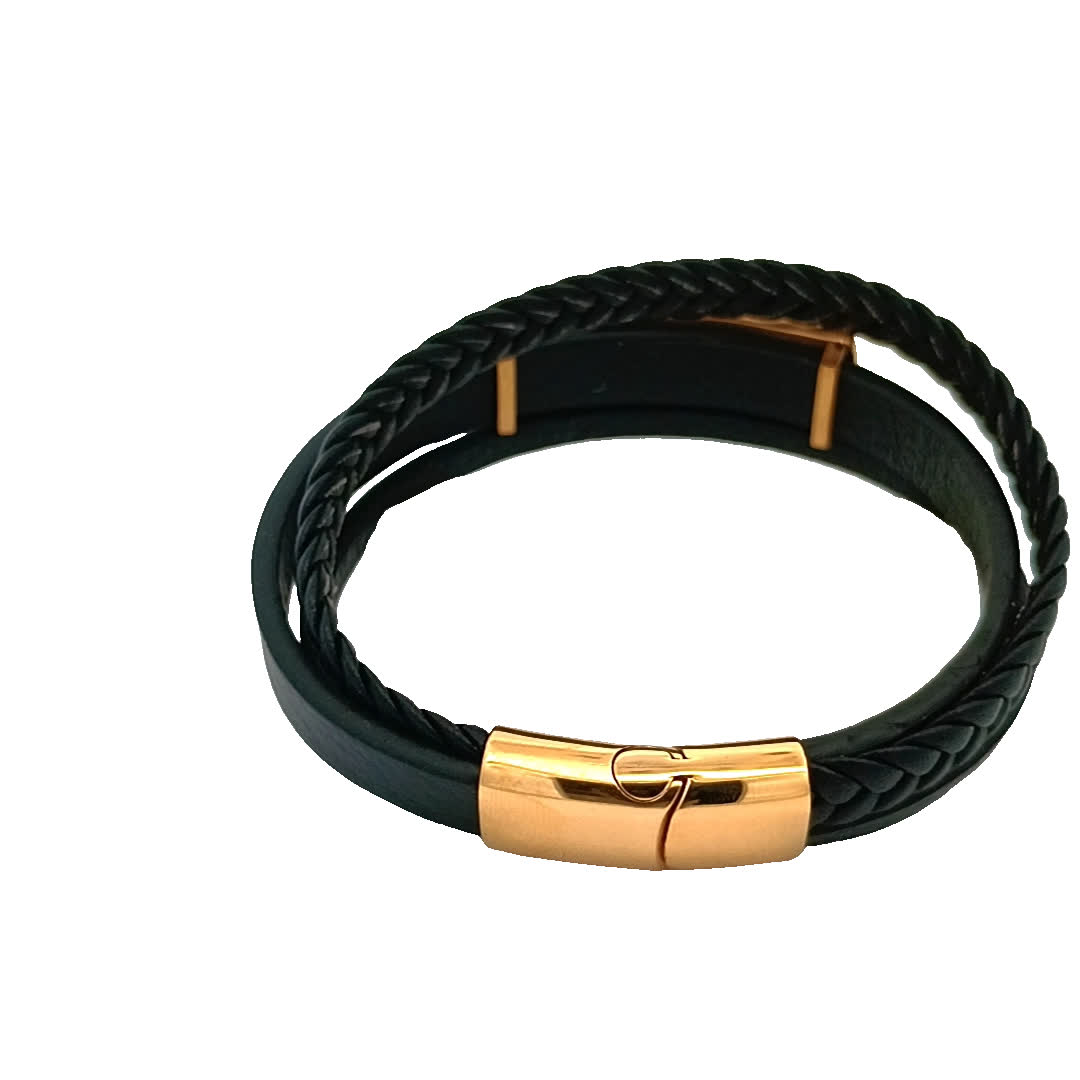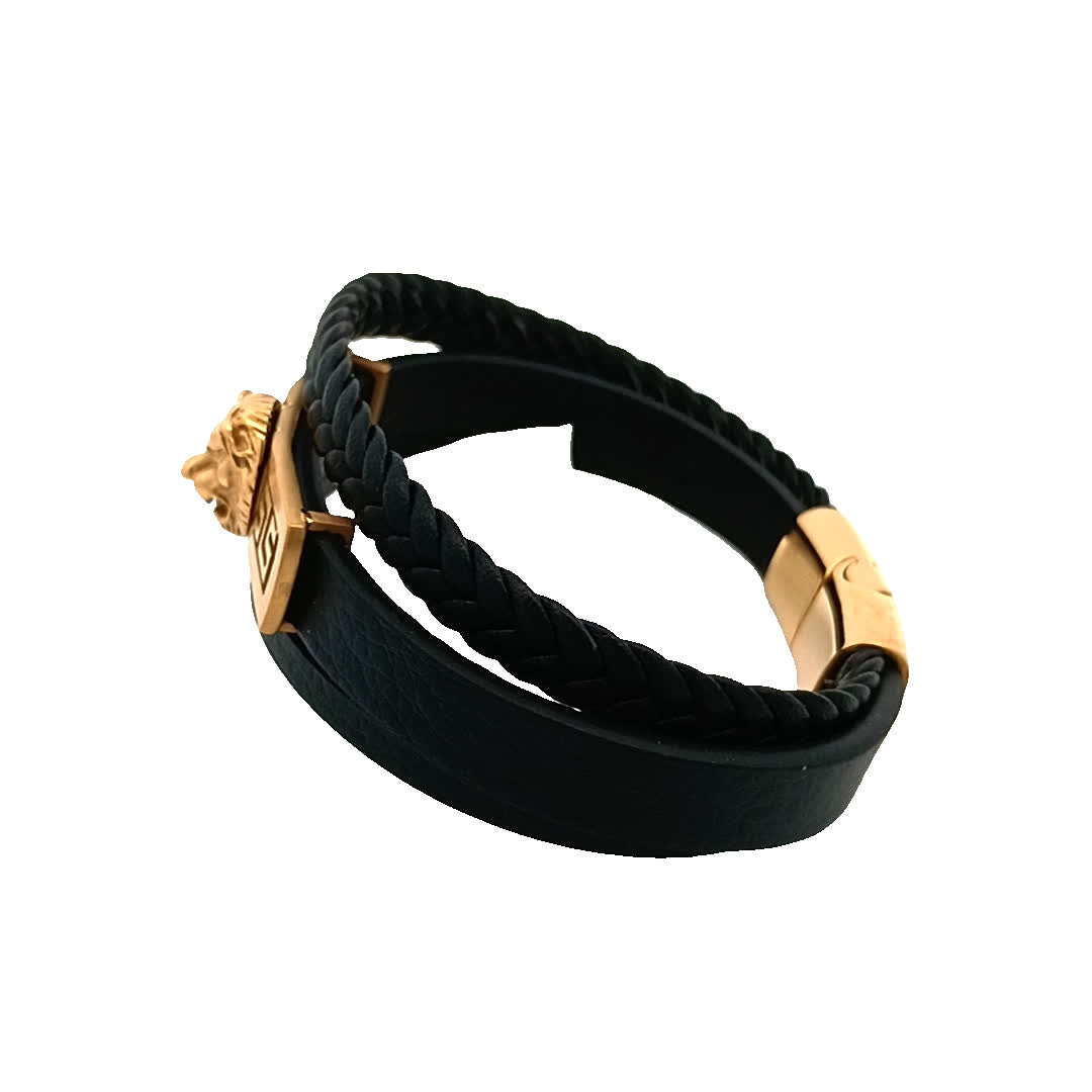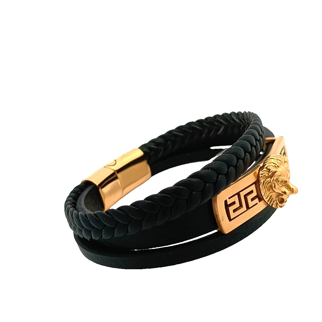 Podnieś poziom swoich dodatków dzięki tym stylowym czarnym skórzanym bransoletkom. Dzięki wyjątkowemu plecionemu wzorowi i efektownemu zapięciu w kształcie głowy lwa te elementy są idealne, aby stworzyć odważne oświadczenie. Niezależnie od tego, czy noszone pojedynczo, czy w stosie, dodają odrobinę wyrafinowania do każdego stroju.