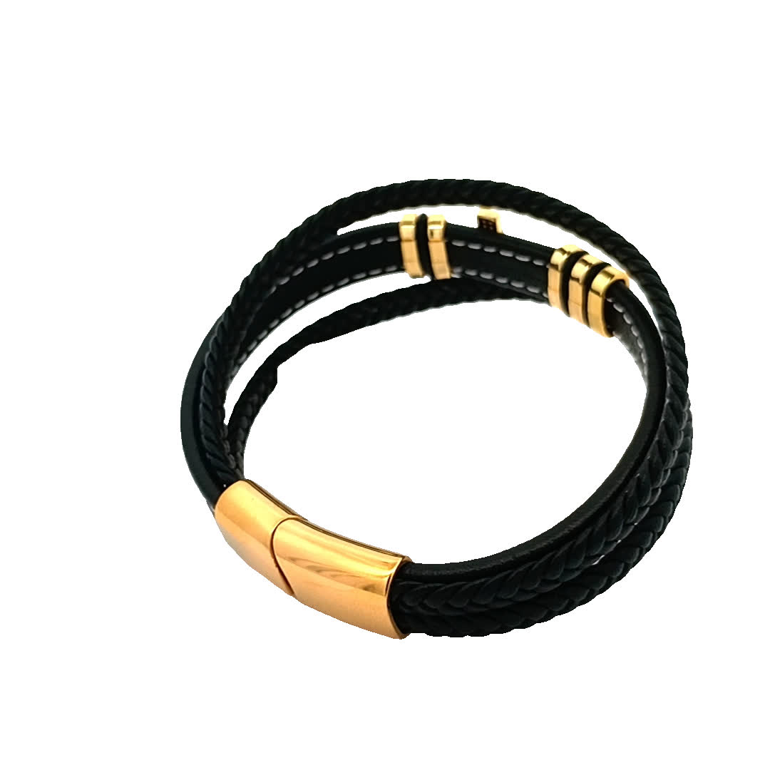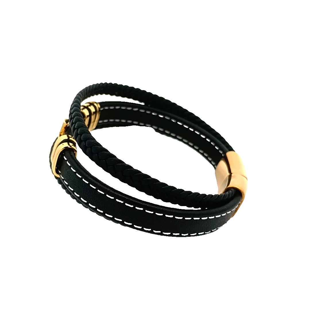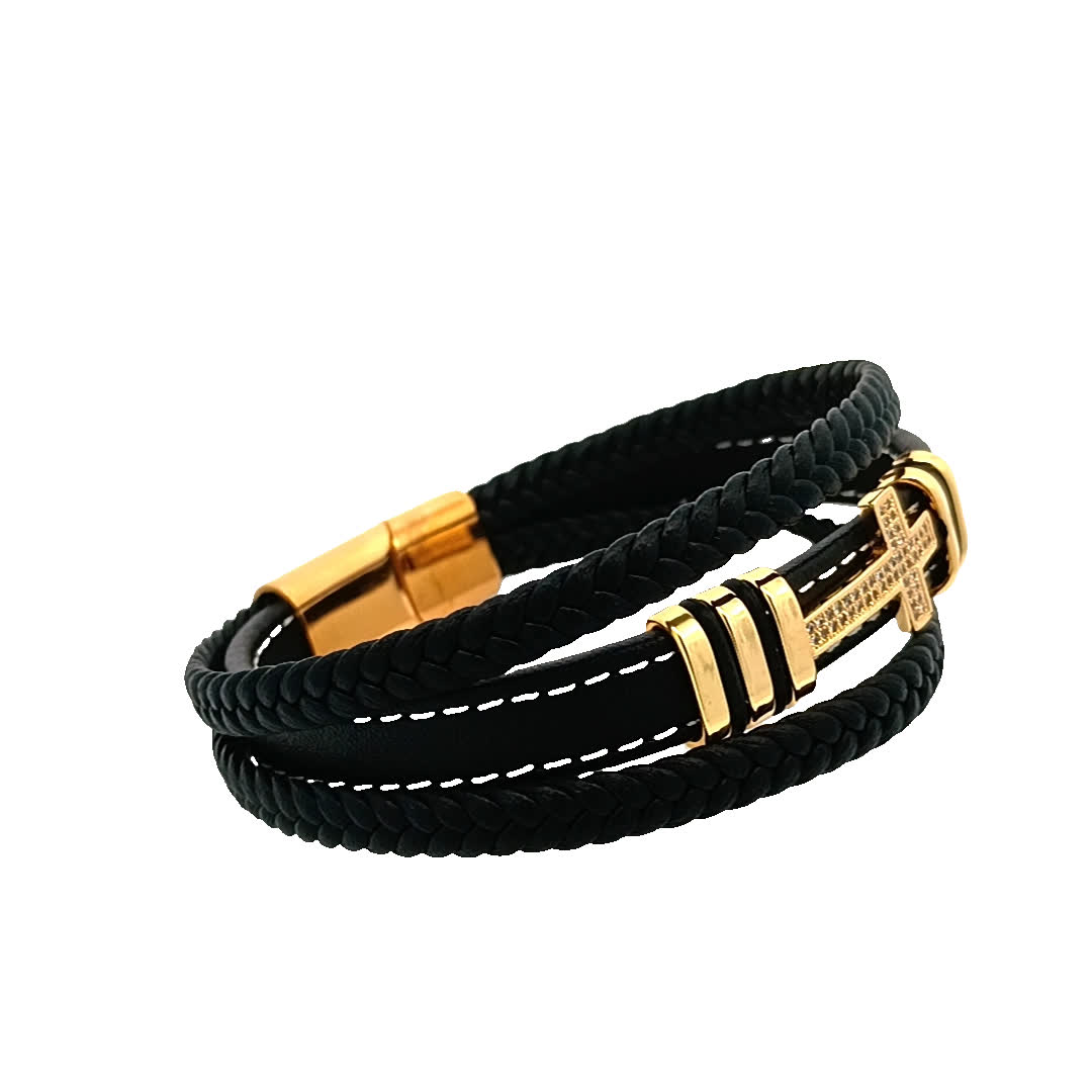 Podnieś poziom swoich dodatków dzięki tej stylowej czarnej skórzanej bransoletce. Dzięki wyjątkowemu plecionemu wzorowi i efektownemu kamieniemu krzyżowi w centralnym punkcie, ten element jest idealny zarówno na okazje codzienne, jak i formalne. Regulowane dopasowanie zapewnia wygodę, jednocześnie stanowiąc odważne oświadczenie.