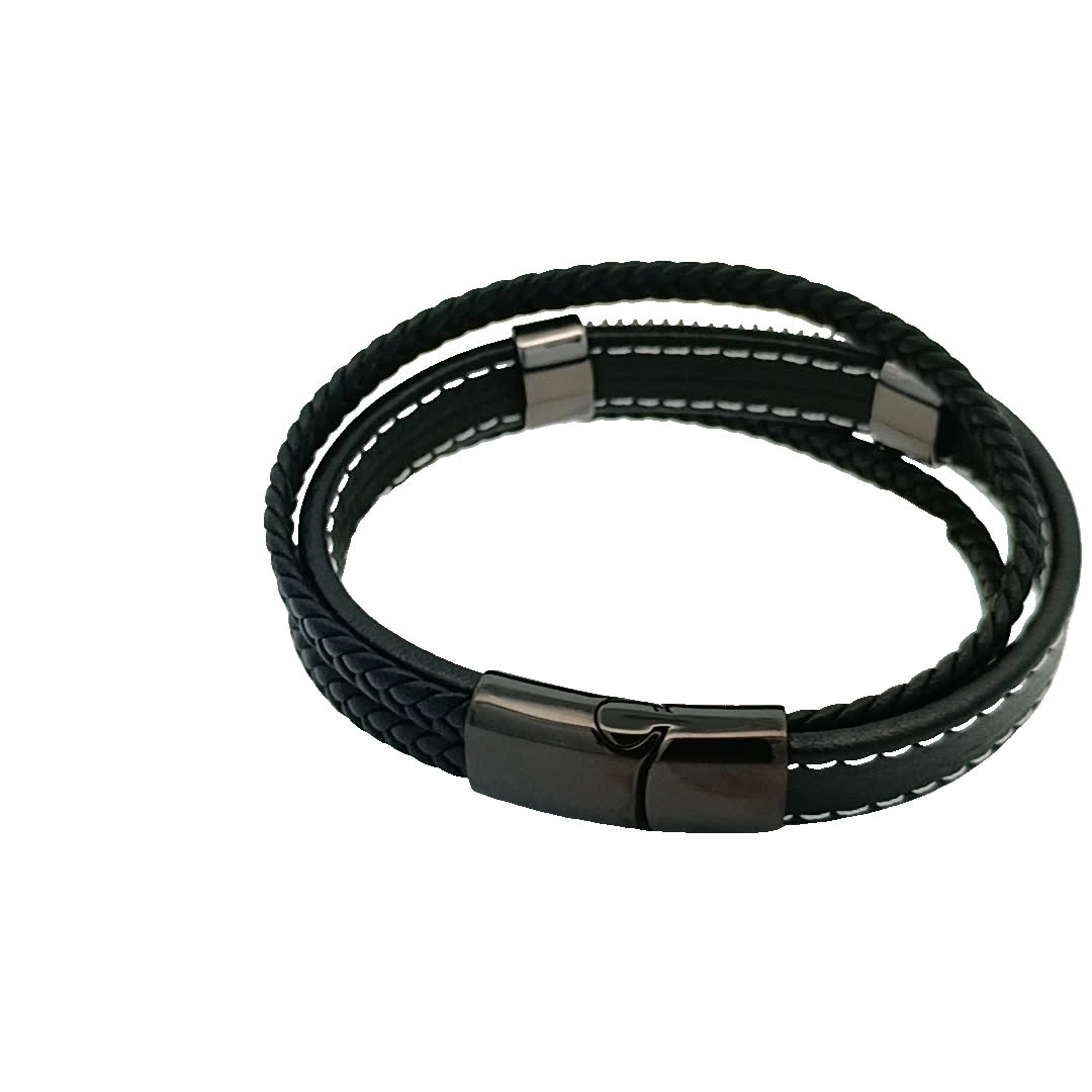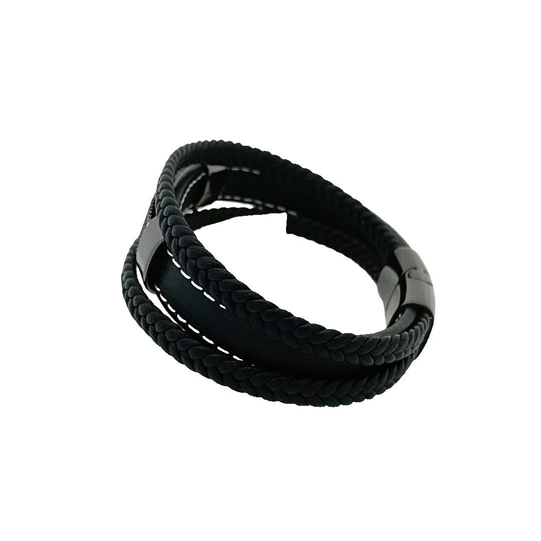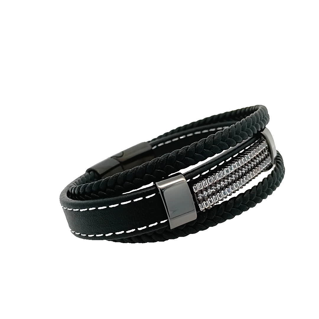 Ta elegancka czarna pleciona bransoletka łączy nowoczesny design z klasycznym urokiem. Posiada eleganckie metalowe zapięcie ozdobione błyszczącymi akcentami, dodaje odrobinę wyrafinowania do każdej stylizacji. Idealna zarówno na okazje codzienne, jak i formalne, ta bransoletka jest niezbędnym dodatkiem dla entuzjastów mody.