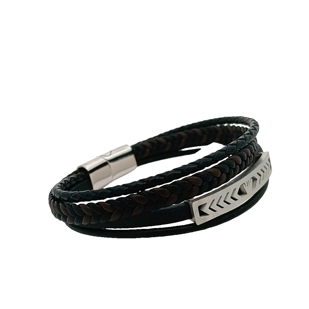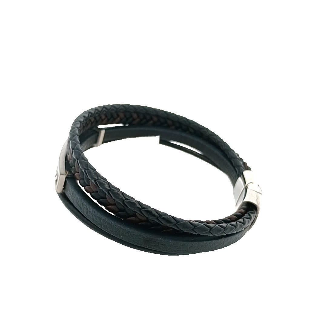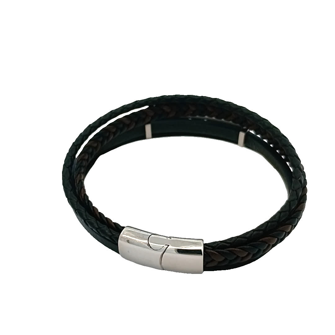 Podnieś poziom swoich dodatków dzięki tej stylowej skórzanej bransoletce, charakteryzującej się wyjątkowym plecionym wzorem w bogatych odcieniach brązu i czerni. posrebrzany akcent dodaje odrobinę elegancji, dzięki czemu idealnie nadaje się zarówno na okazje codzienne, jak i formalne. Noś ją samodzielnie lub zestaw z innymi bransoletkami, aby uzyskać modny, warstwowy wygląd.