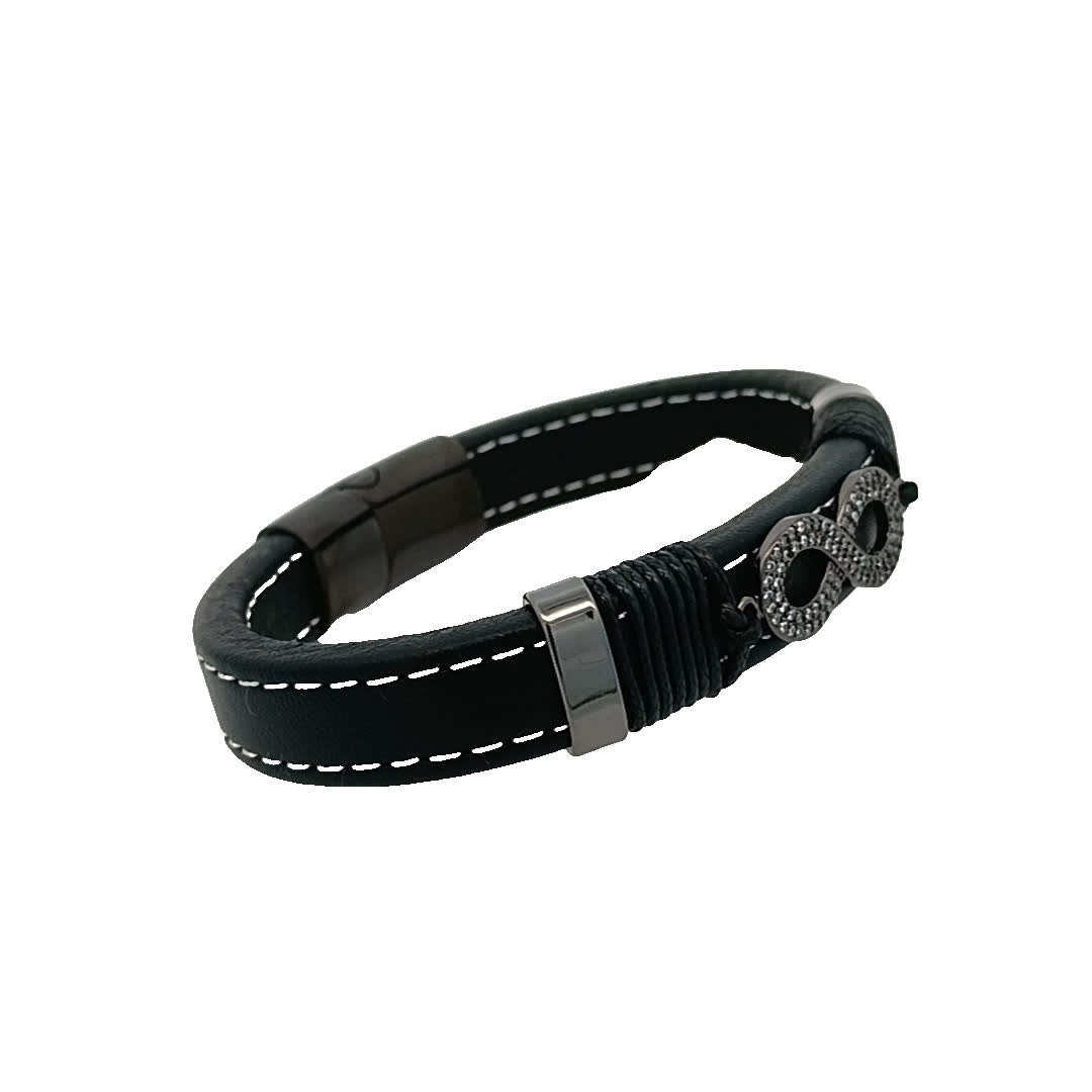 Ta elegancka czarna bransoletka nieskończoności łączy nowoczesny design z ponadczasową symboliką. Wykonana z trwałych materiałów, ma oszałamiający symbol nieskończoności ozdobiony błyszczącymi kamieniami, dzięki czemu jest idealnym dodatkiem na każdą okazję. Noś ją samodzielnie lub zestaw z innymi bransoletkami, aby uzyskać modny wygląd.