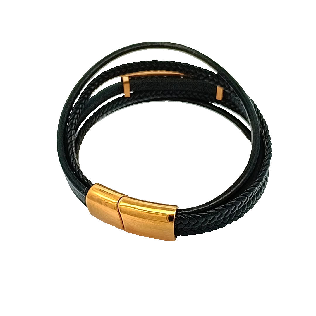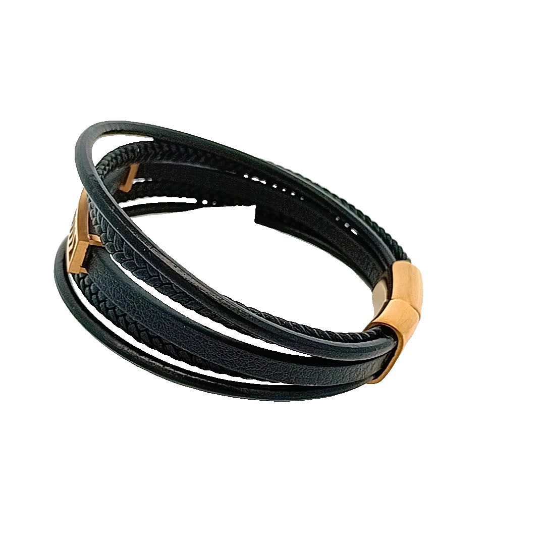 Podnieś poziom swoich dodatków dzięki tej stylowej czarnej skórzanej bransoletce. Z wyjątkowym złocistym akcentem i misternymi wzorami, dodaje odrobinę elegancji do każdego stroju. Idealna zarówno na okazje codzienne, jak i formalne, ta bransoletka jest koniecznością dla entuzjastów mody.