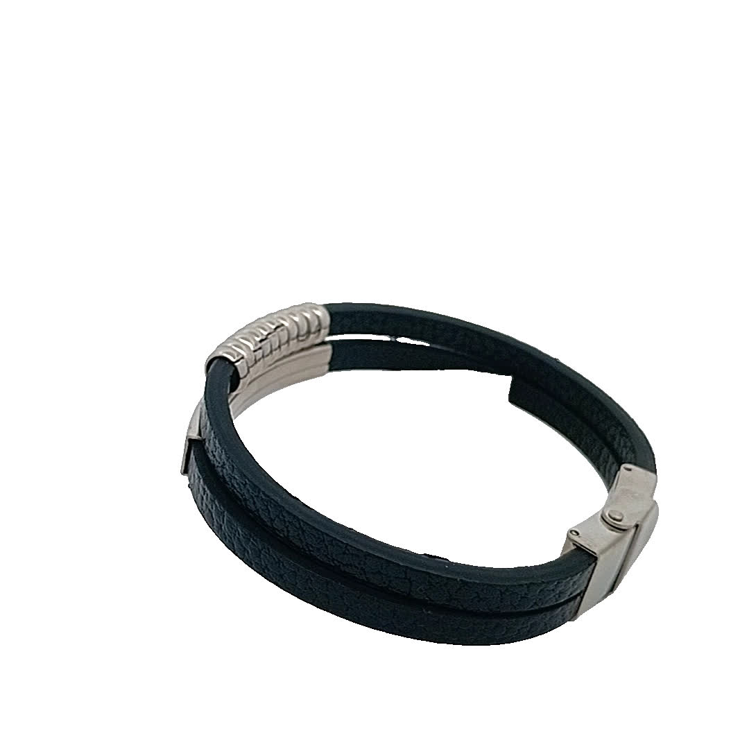 Podnieś poziom swoich dodatków dzięki tej stylowej czarnej skórzanej bransoletce. Elegancki design z polerowanymi srebrnymi akcentami bez wysiłku łączy nowoczesną elegancję z codziennym noszeniem. Idealna zarówno na nieformalne wyjścia, jak i formalne wydarzenia, ta bransoletka jest niezbędnym dodatkiem do Twojej kolekcji biżuterii.