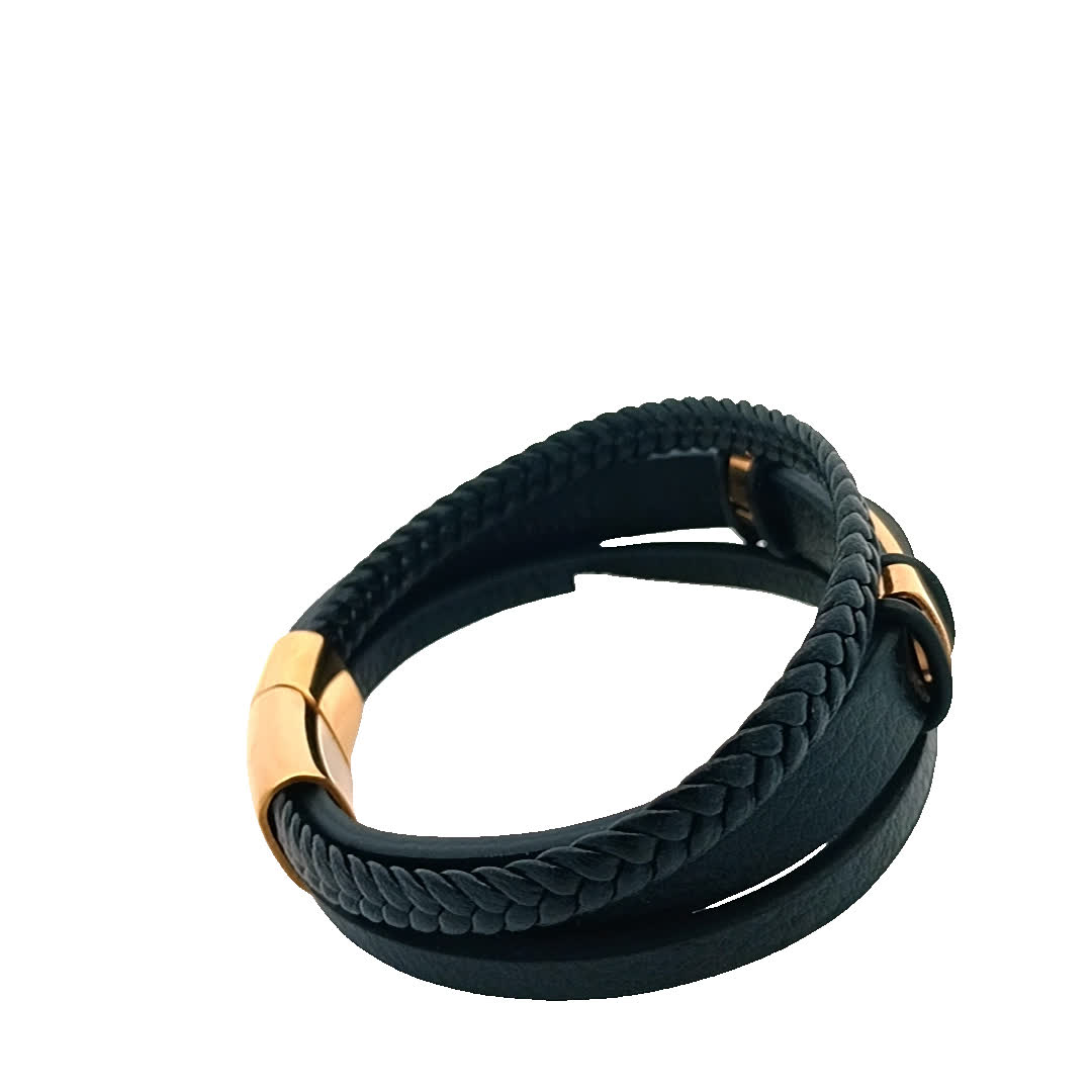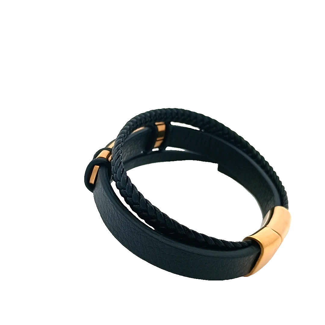 Podnieś poziom swoich dodatków dzięki tej stylowej czarnej skórzanej bransoletce. Dzięki wyjątkowemu plecionemu wzorowi i eleganckiemu kamieniemu akcentowi bez wysiłku łączy nowoczesną elegancję z odrobiną surowego uroku. Idealna zarówno na okazje codzienne, jak i formalne, ta bransoletka jest niezbędnym dodatkiem do każdej kolekcji biżuterii.