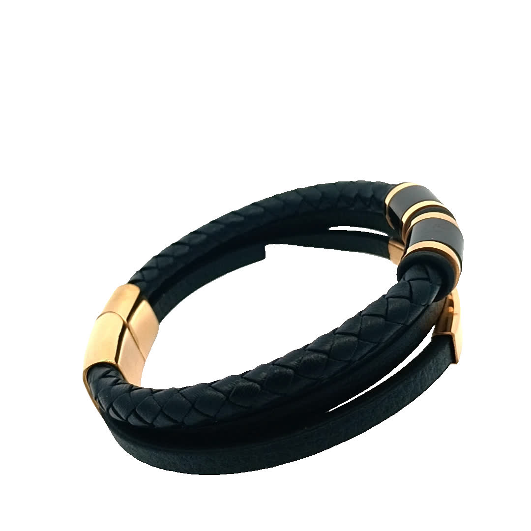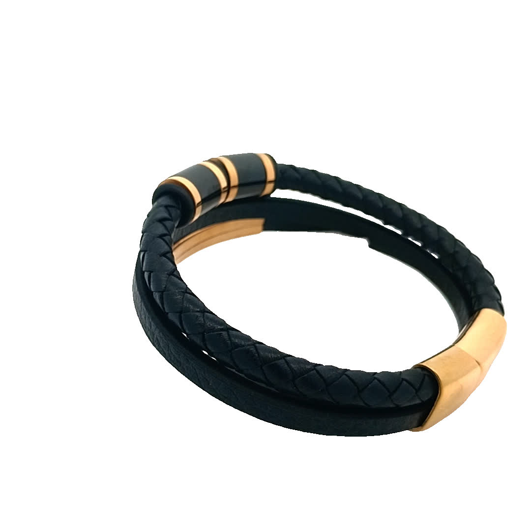 Podnieś poziom swoich dodatków dzięki temu oszałamiającemu czarno-kamieniemu zestawowi bransoletek. Ten element łączący plecioną skórę i eleganckie metalowe akcenty doskonale sprawdzi się zarówno na co dzień, jak i na formalne okazje. Jego wszechstronny design pozwala na łączenie i dopasowywanie z inną biżuterią lub noszenie go solo, aby uzyskać szykowny efekt.