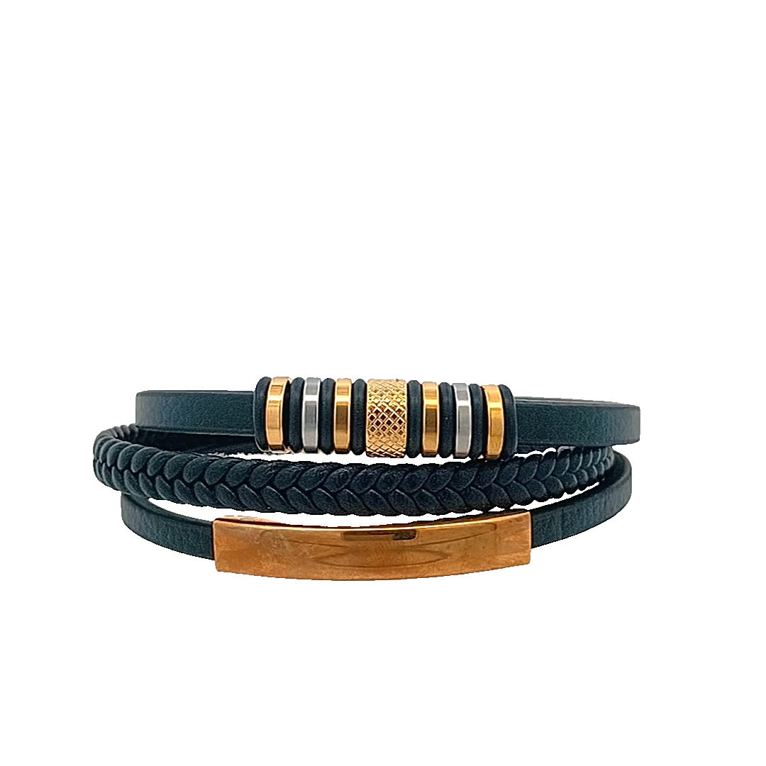 Podnieś poziom swoich dodatków dzięki temu stylowemu zestawowi skórzanych bransoletek. Te bransoletki, łączące w sobie plecione i gładkie tekstury, są zaprojektowane tak, aby uzupełniać każdy strój, zarówno swobodny, jak i formalny. złocone i posrebrzane akcenty dodają odrobinę elegancji, dzięki czemu thuem idealnie nadaje się do noszenia warstwowo lub solo.