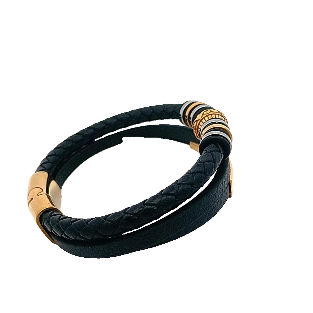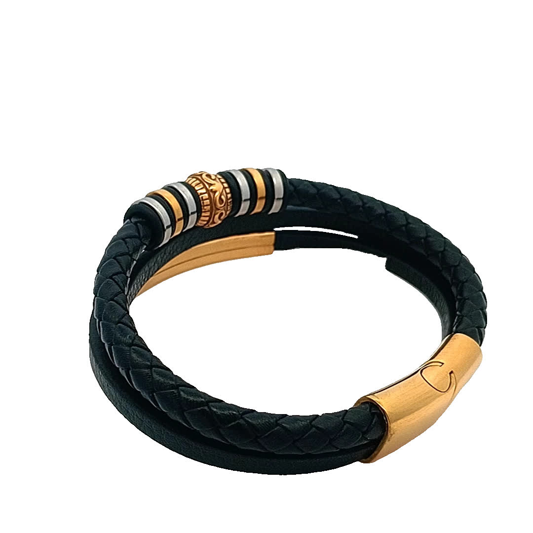 Podnieś poziom swoich dodatków dzięki temu stylowemu zestawowi czarnych skórzanych bransoletek. Łącząc plecione i gładkie tekstury, ten element jest idealny zarówno na okazje codzienne, jak i formalne. złocone akcenty dodają odrobinę elegancji, dzięki czemu jest wszechstronnym dodatkiem do każdej kolekcji biżuterii.
