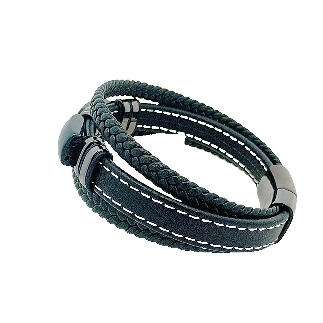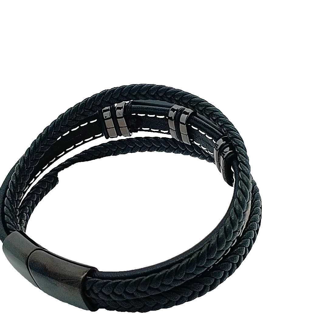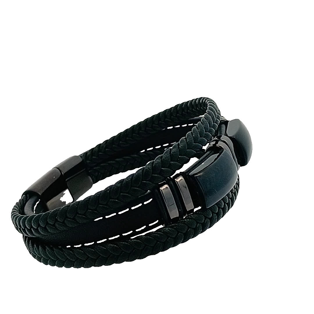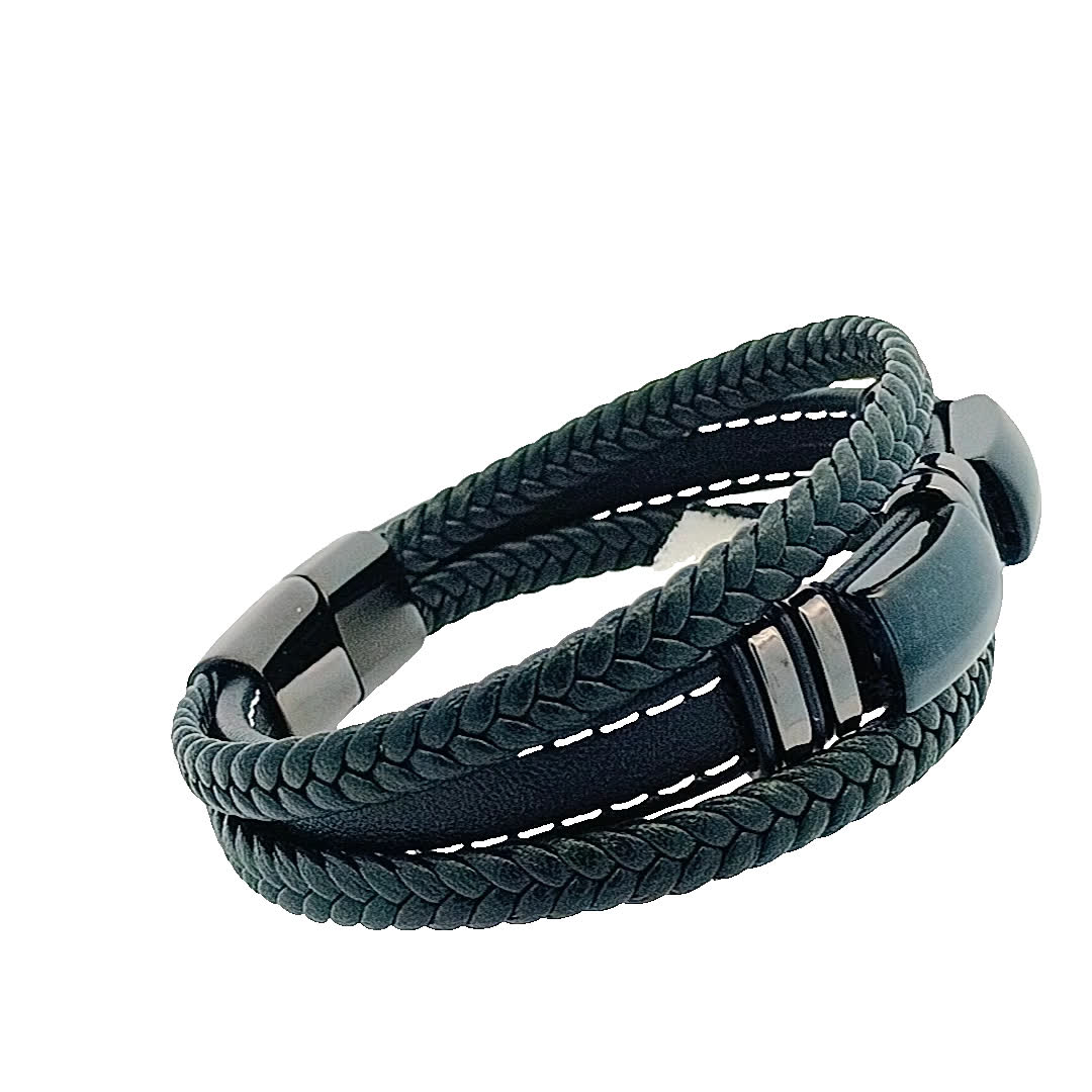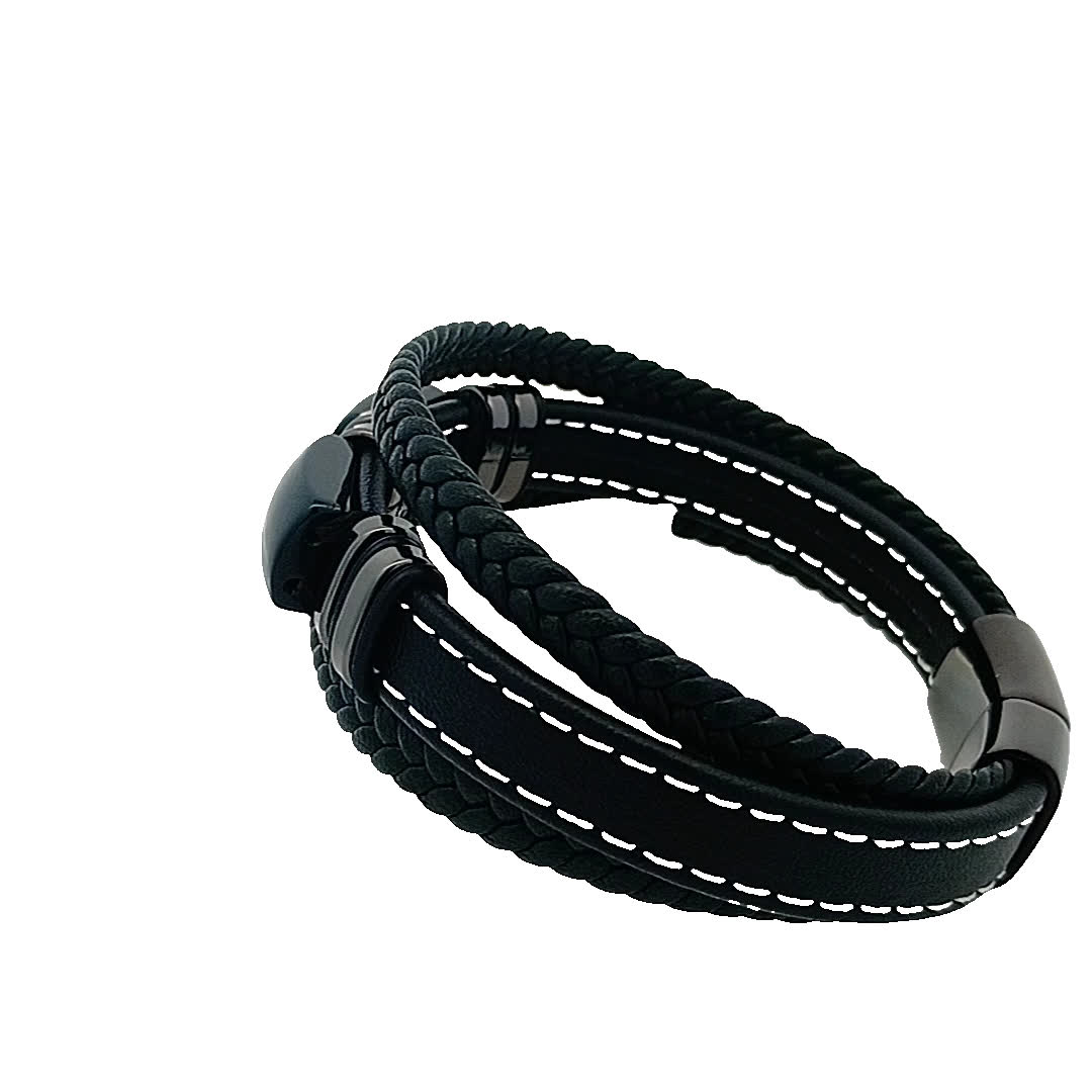 Podnieś poziom swoich dodatków dzięki tej stylowej czarnej skórzanej bransoletce. Dzięki wyjątkowemu plecionemu wzornictwu i eleganckim metalowym akcentom bez wysiłku łączy surowy urok z nowoczesną elegancją. Idealna zarówno na okazje codzienne, jak i formalne, ta bransoletka jest niezbędnym dodatkiem do każdej kolekcji biżuterii.