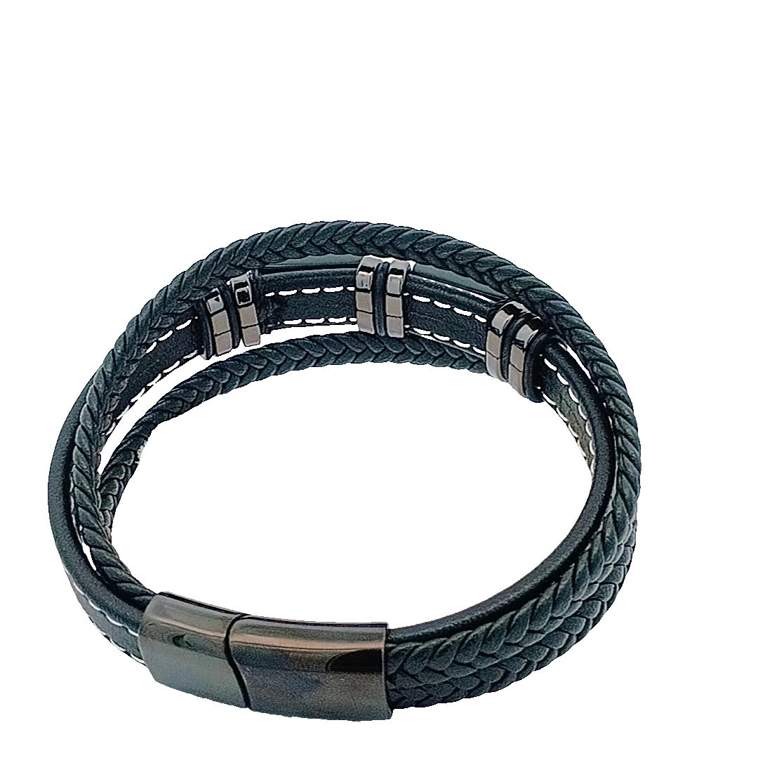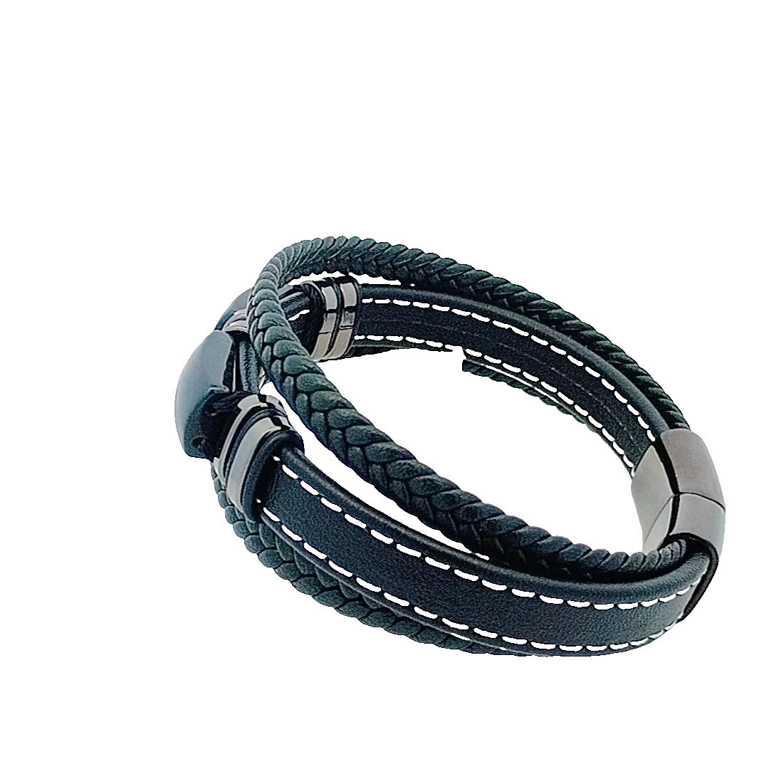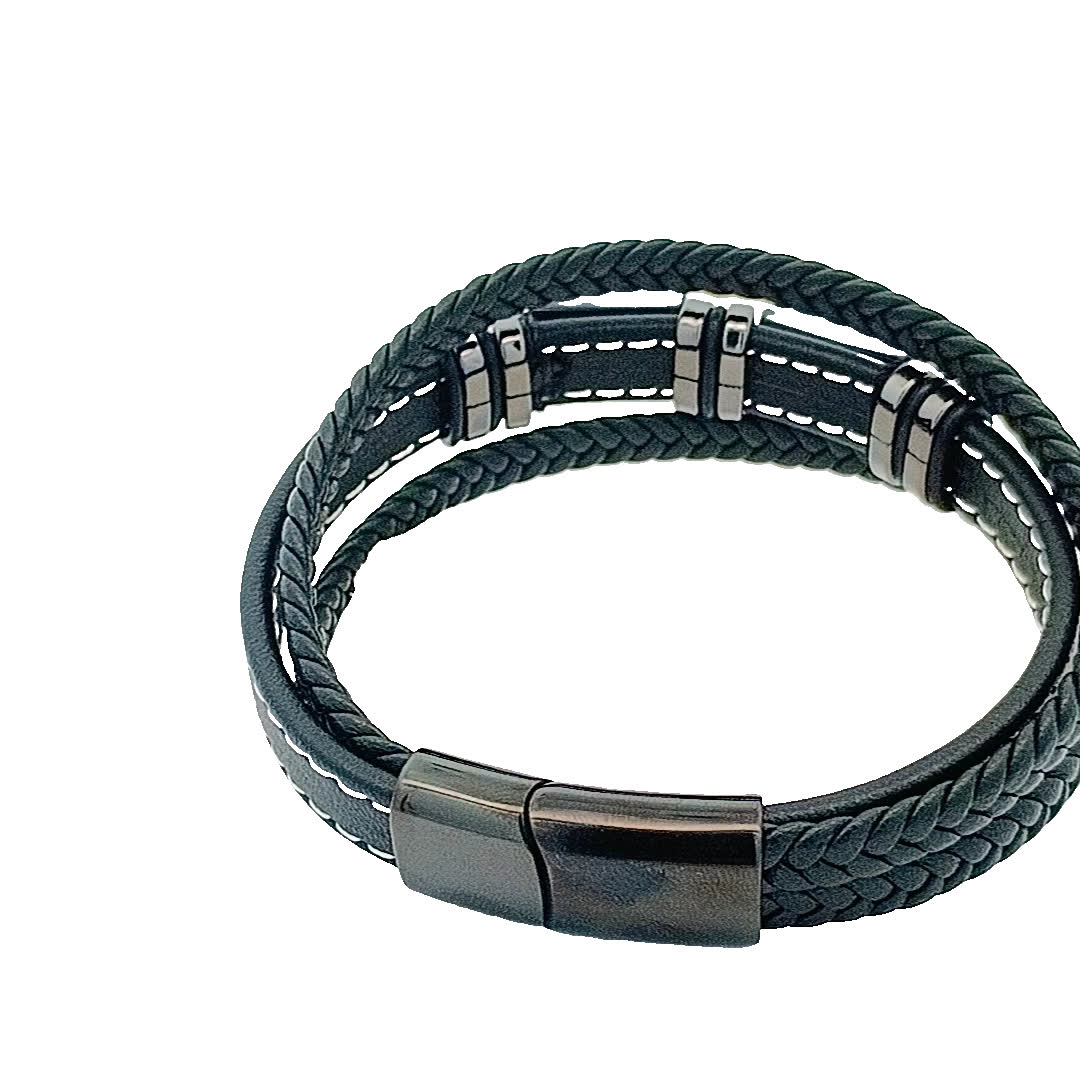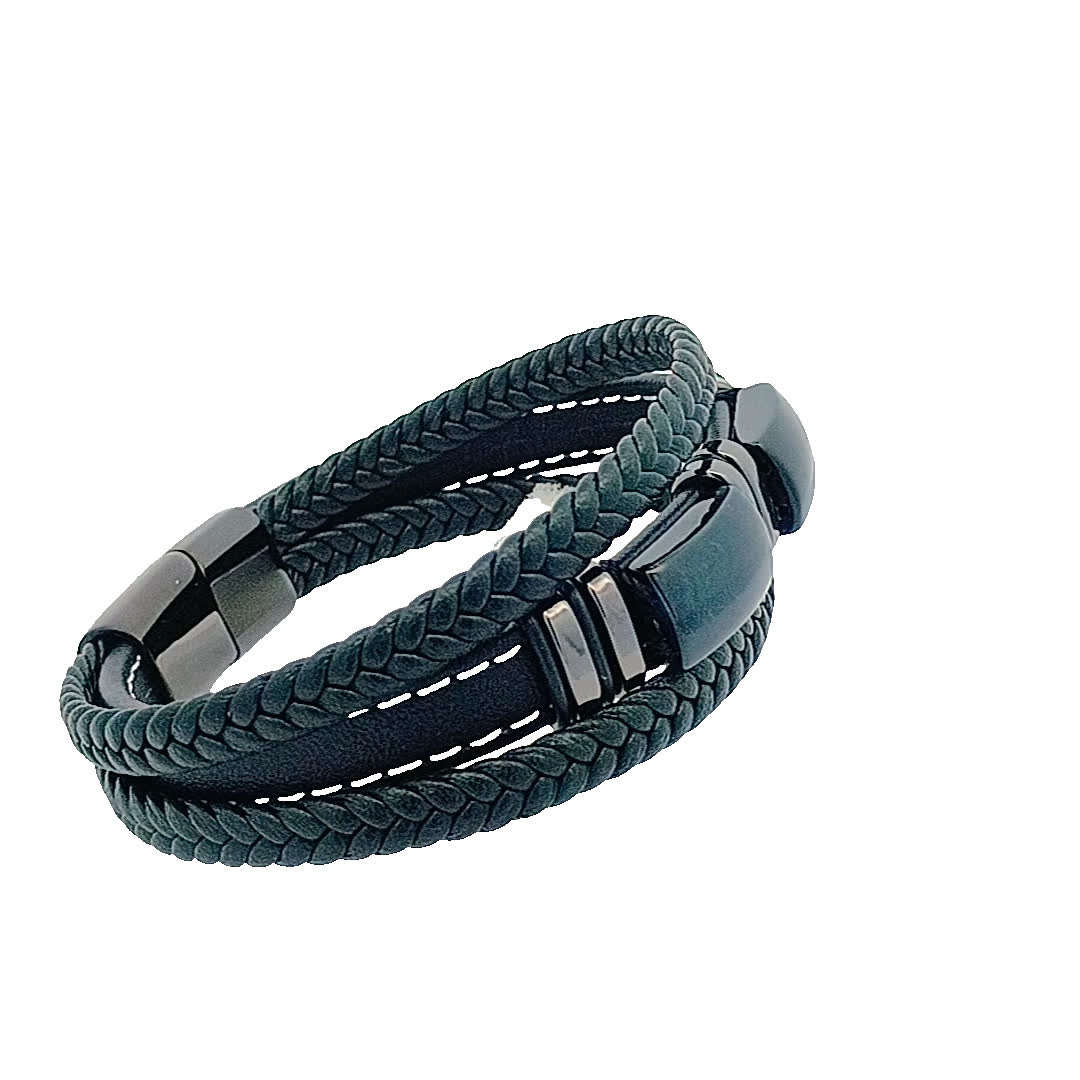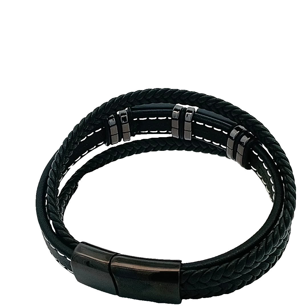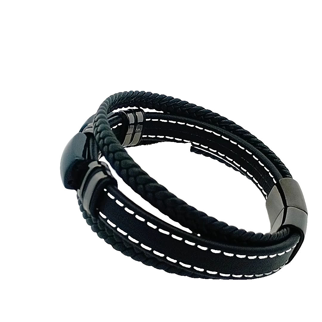 Podnieś poziom swoich dodatków dzięki tej stylowej czarnej skórzanej bransoletce. Dzięki wyjątkowemu plecionemu wzornictwu i eleganckim metalowym akcentom bez wysiłku łączy surowy urok z nowoczesną elegancją. Idealna zarówno na okazje codzienne, jak i formalne, ta bransoletka jest niezbędnym dodatkiem do każdej kolekcji biżuterii.