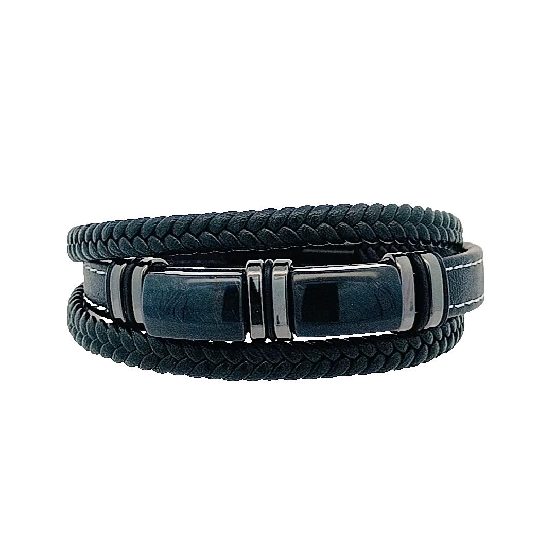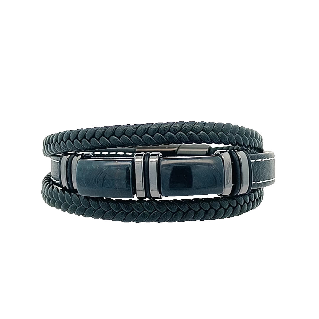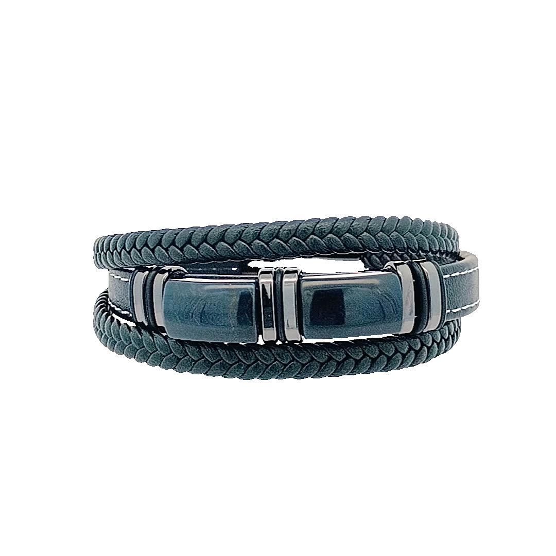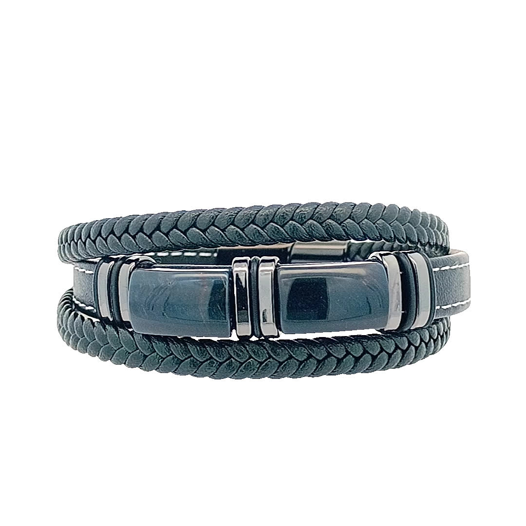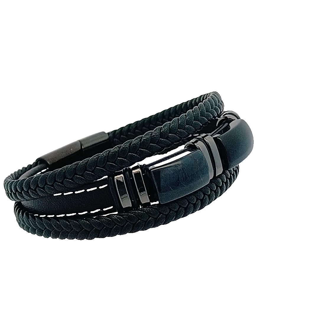 Podnieś poziom swoich dodatków dzięki tej stylowej czarnej skórzanej bransoletce. Dzięki wyjątkowemu plecionemu wzornictwu i eleganckim metalowym akcentom bez wysiłku łączy surowy urok z nowoczesną elegancją. Idealna zarówno na okazje codzienne, jak i formalne, ta bransoletka jest niezbędnym dodatkiem do każdej kolekcji biżuterii.