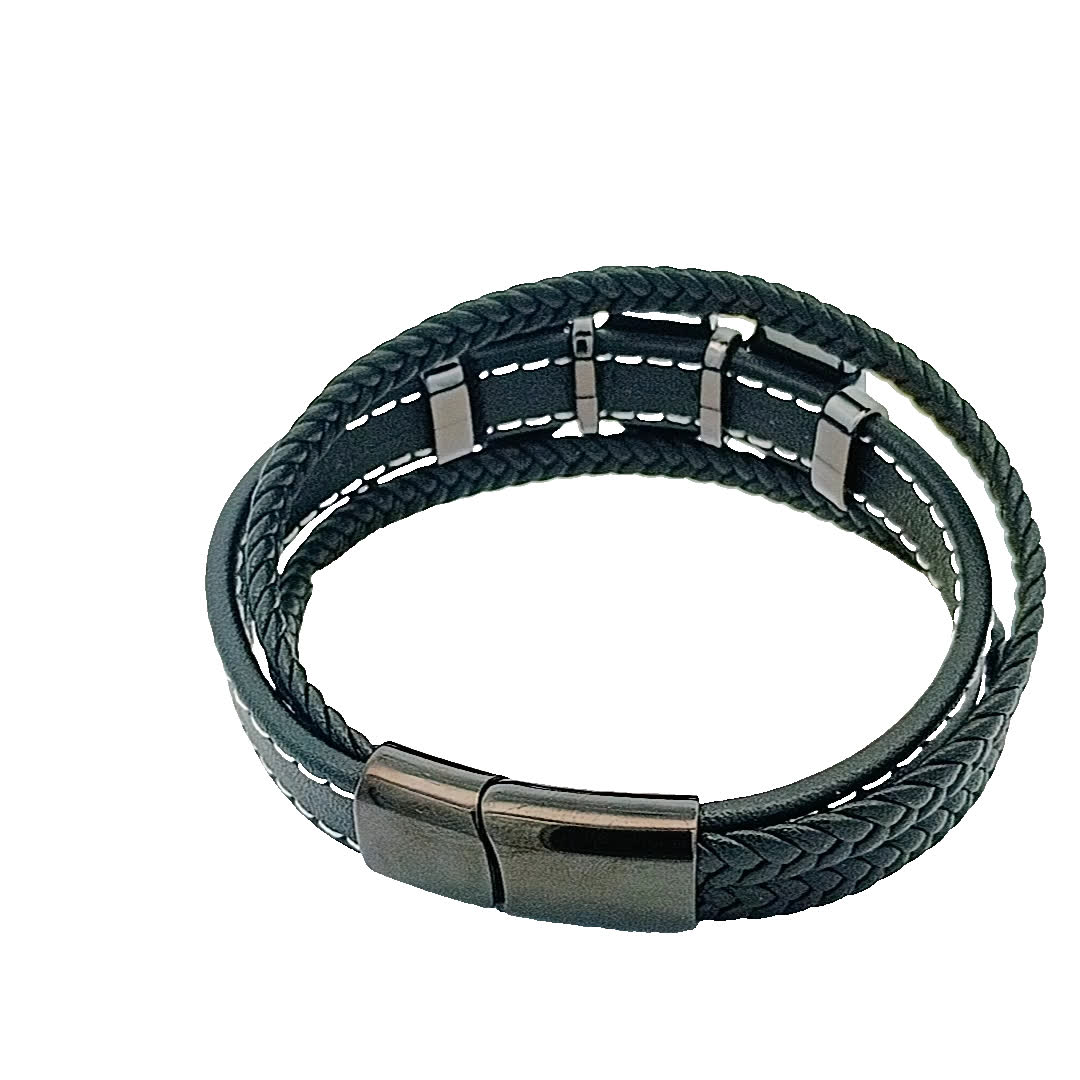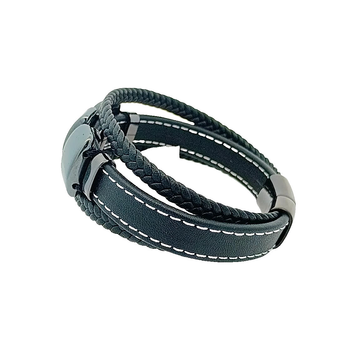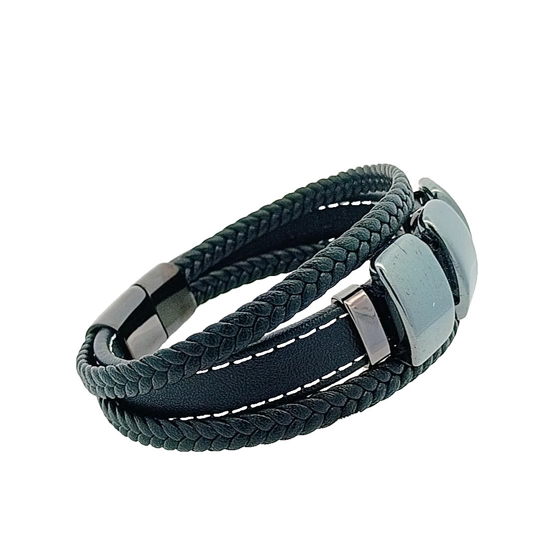 Podnieś poziom swoich dodatków dzięki tej stylowej czarnej skórzanej bransoletce. Dzięki wyjątkowemu wzornictwu z gładkimi szarymi akcentami bez wysiłku łączy nowoczesną estetykę z klasycznym urokiem. Idealna zarówno na okazje codzienne, jak i formalne, ta bransoletka jest niezbędnym dodatkiem do Twojej kolekcji biżuterii.