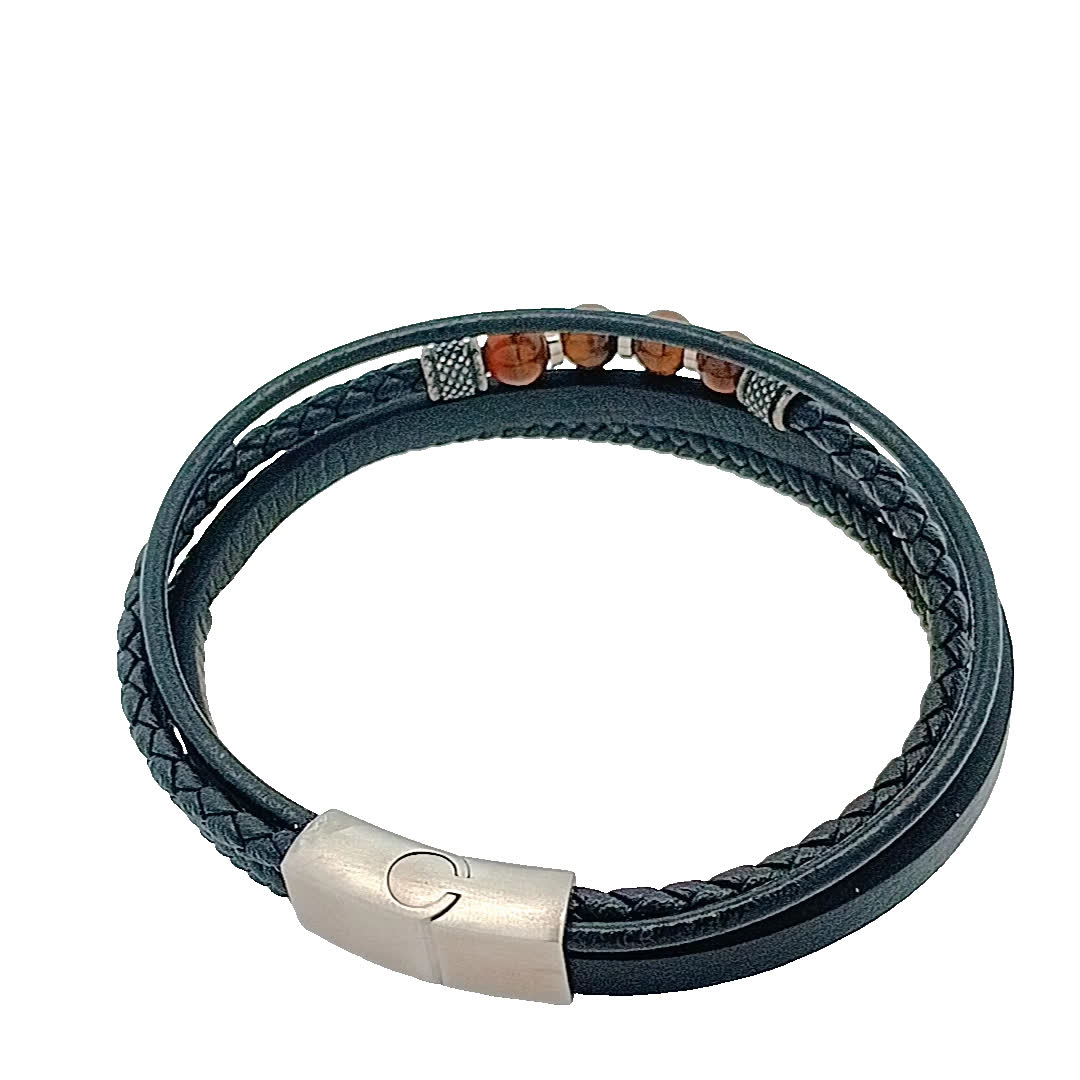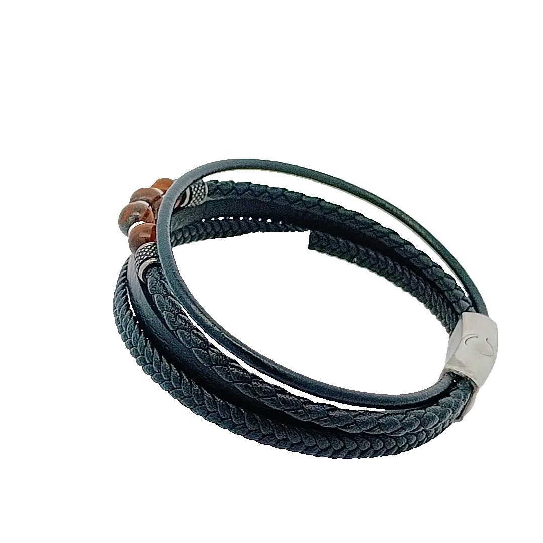 Podnieś poziom swoich dodatków dzięki tej stylowej bransoletce ze skóry i koralików. Ta część, wykonana z połączenia eleganckiej czarnej skóry i przyciągających wzrok koralików, idealnie nadaje się zarówno na okazje codzienne, jak i formalne. Jej wyjątkowy design sprawia, że jest to wyjątkowy dodatek do każdej kolekcji biżuterii.