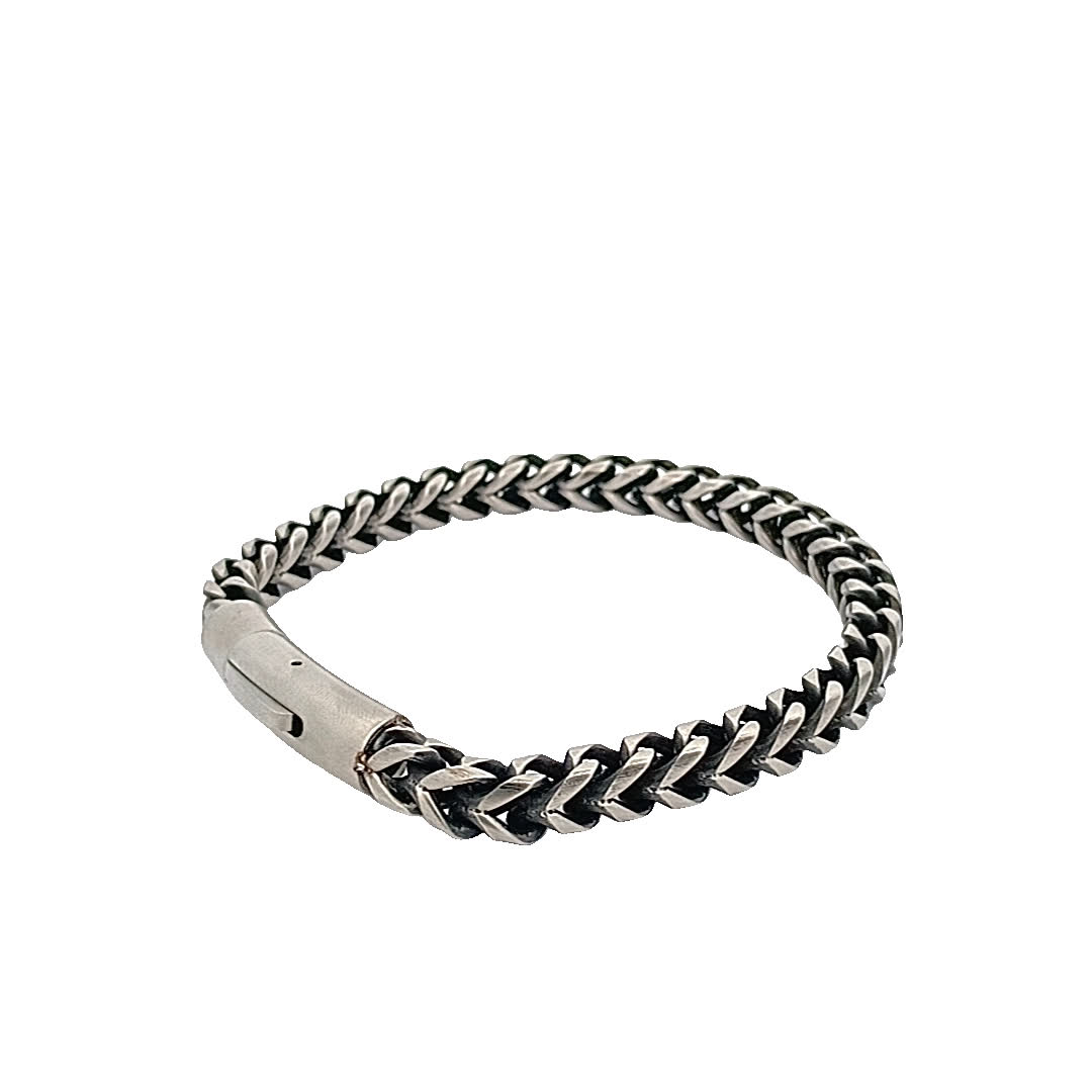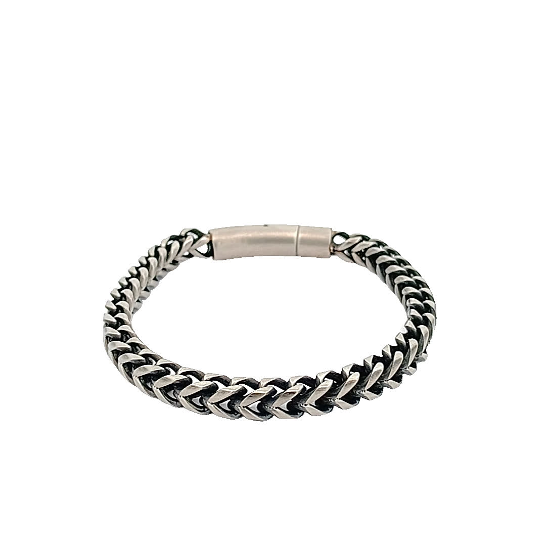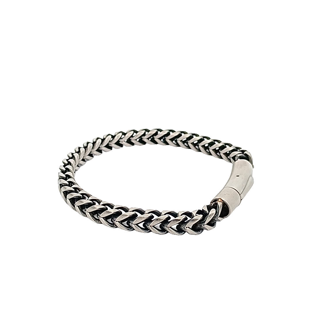 Podnieś poziom swoich dodatków dzięki tej oszałamiającej czarno-srebrnej bransoletce. Jej misterny pleciony wzór dodaje odrobinę wyrafinowania, dzięki czemu idealnie nadaje się zarówno na okazje codzienne, jak i formalne. Bezpieczne zapięcie zapewnia wygodne dopasowanie, dzięki czemu możesz ją nosić przez cały dzień z łatwością.
