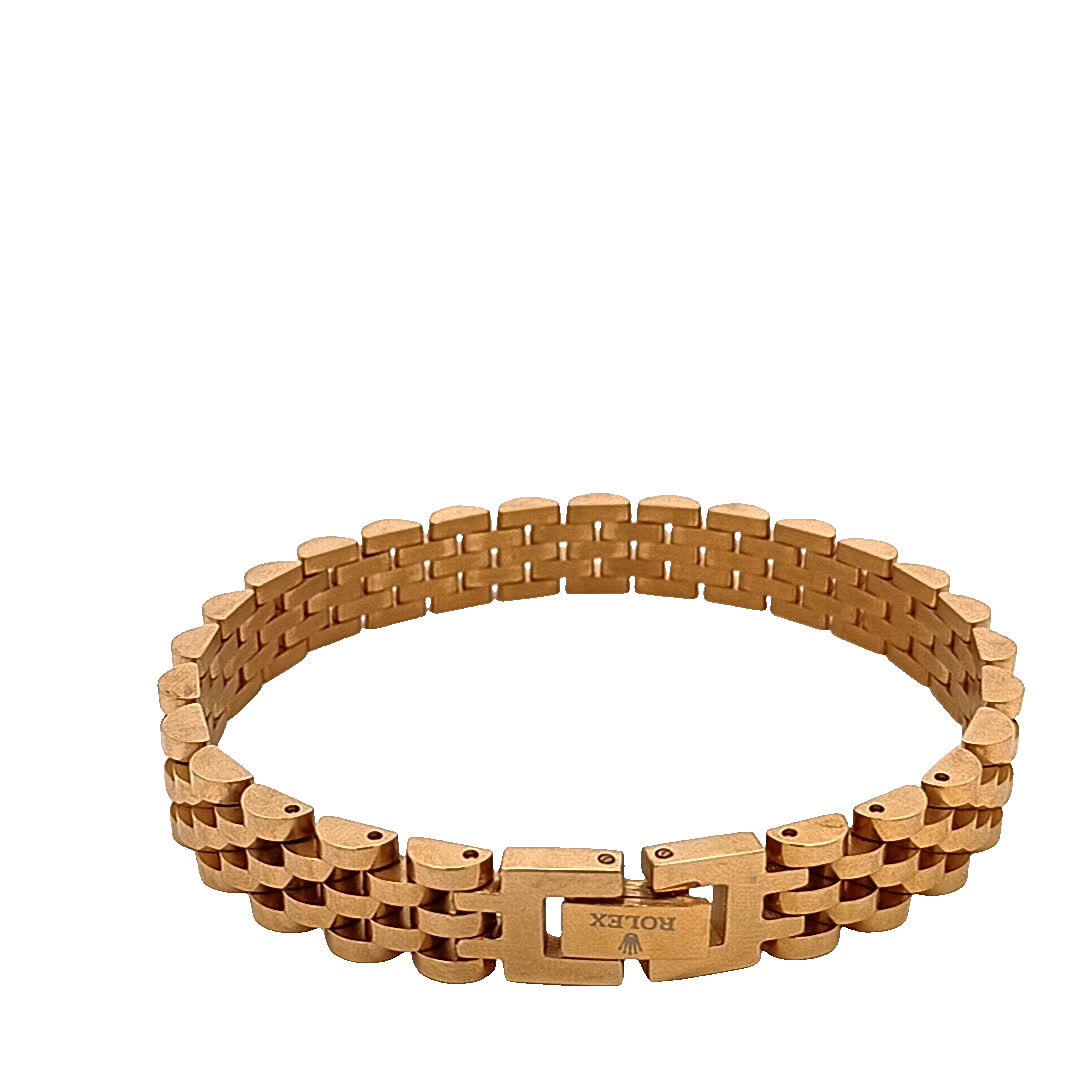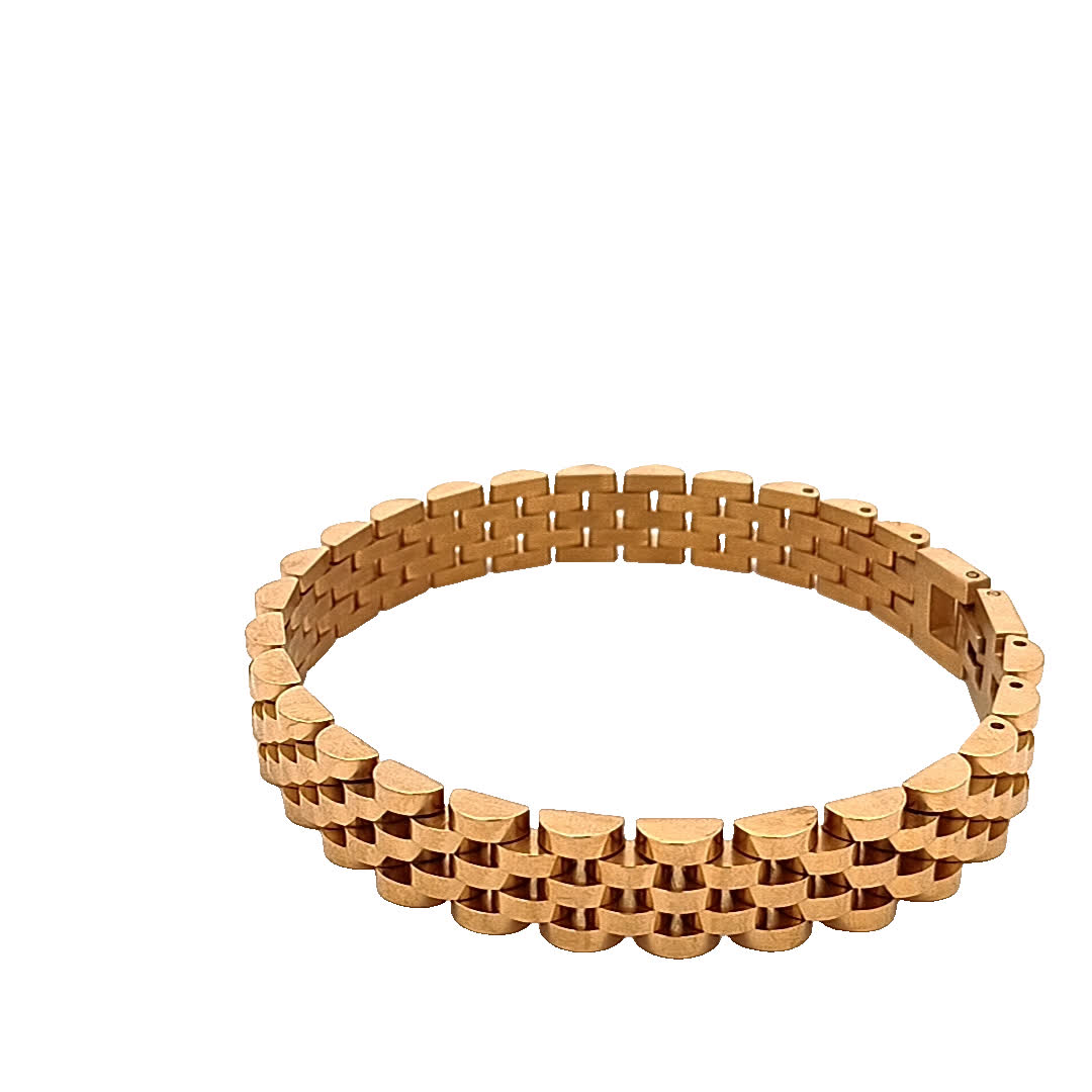 Ta oszałamiająca złocona bransoletka ma wyjątkowy design, który łączy elegancję z nowoczesnym stylem. Jej skomplikowane ogniwa i polerowane wykończenie sprawiają, że jest idealnym dodatkiem zarówno na okazje codzienne, jak i formalne. Noś ją samodzielnie lub zestaw z innymi bransoletkami, aby uzyskać modny, warstwowy wygląd.
