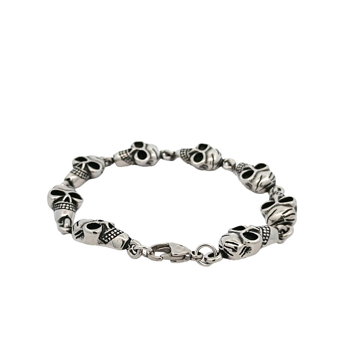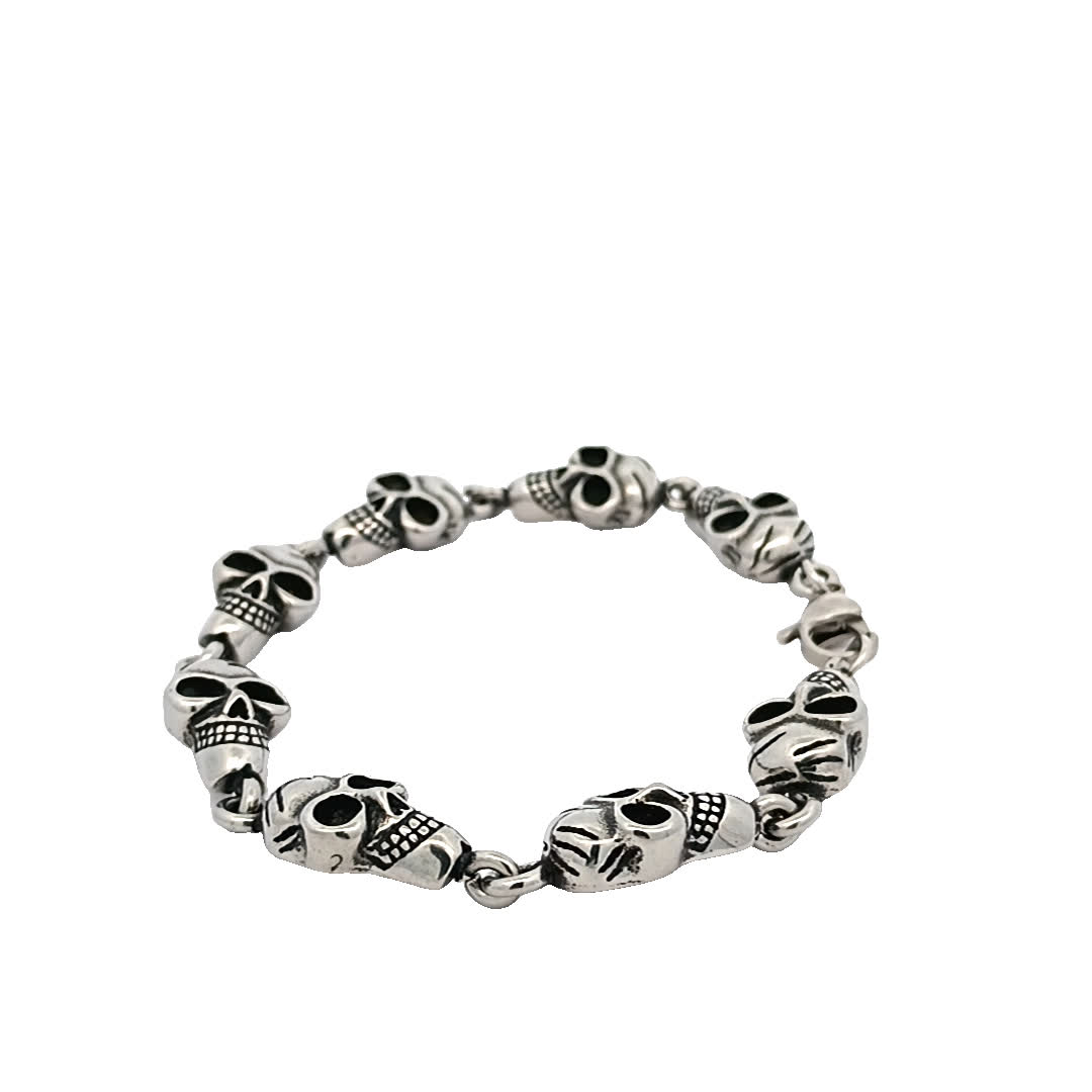 Ta wyjątkowa bransoletka z czaszką łączy w sobie odważny design z nutą elegancji. Wykonana z wysokiej jakości materiałów, posiada misterne, szczegółowe zawieszki w kształcie czaszki, które dodają odważnego akcentu każdej stylizacji. Idealna dla tych, którzy lubią wyrażać swoją indywidualność za pomocą dodatków.