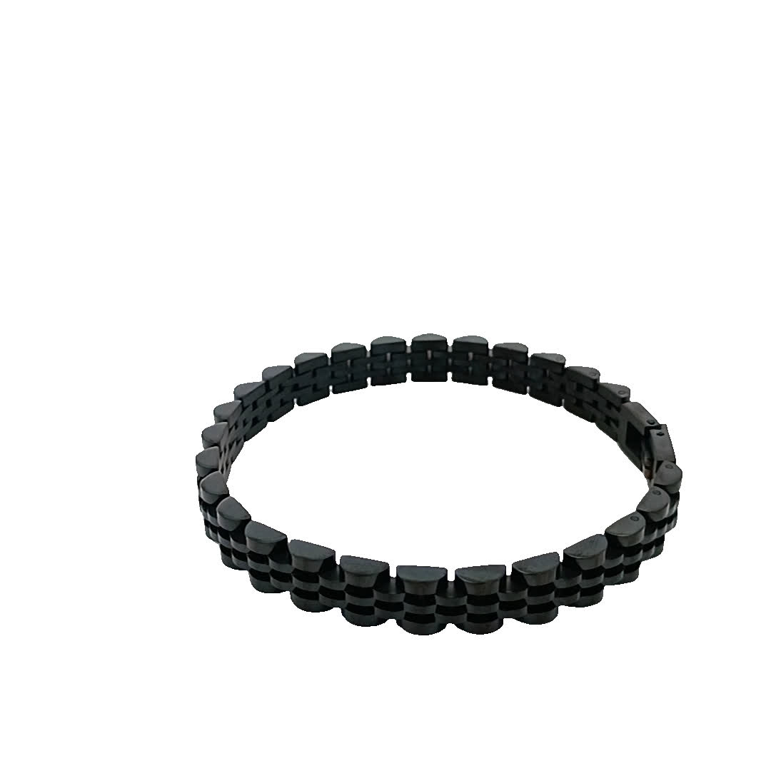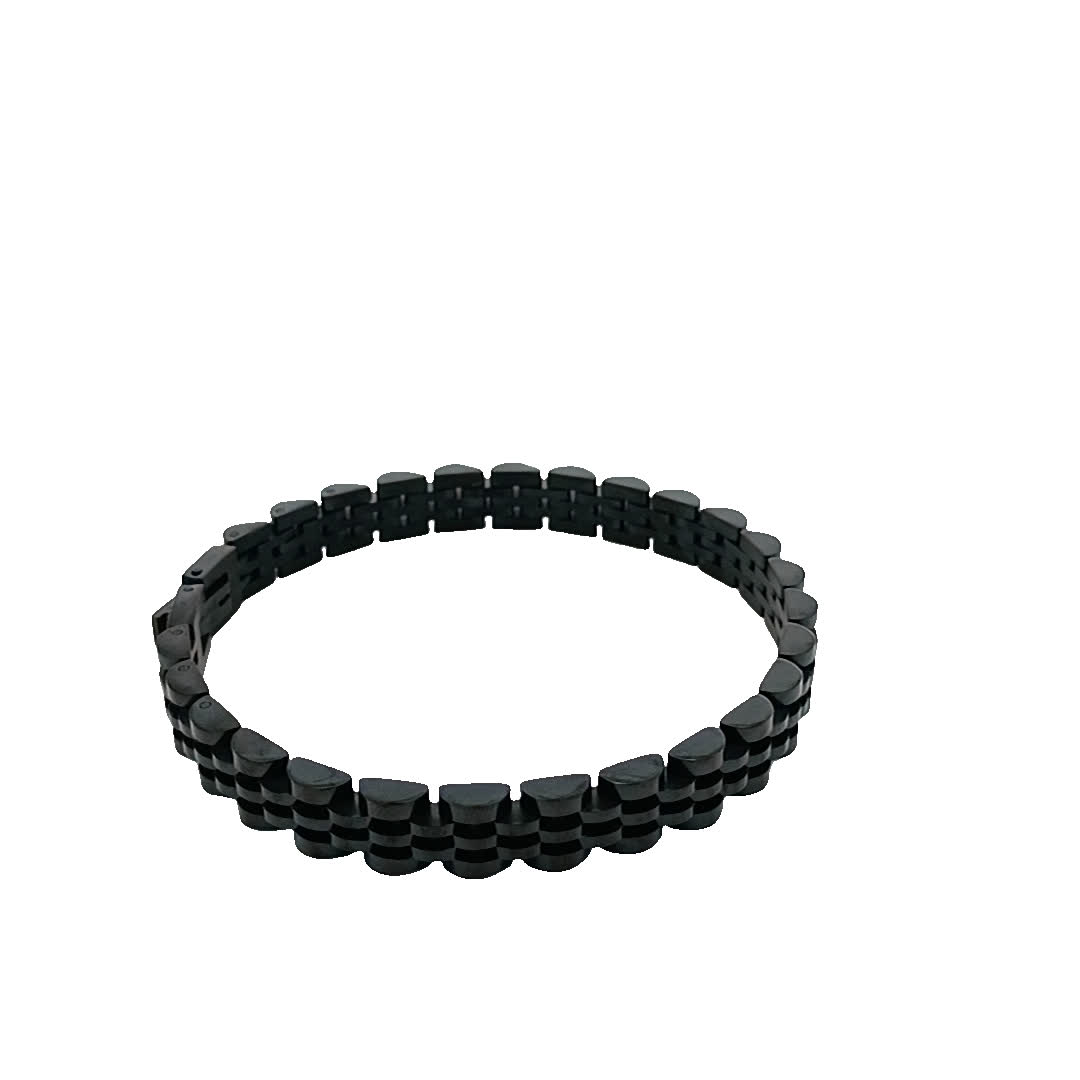 Ta oszałamiająca czarna bransoletka ma wyjątkowy geometryczny wzór, który dodaje odrobinę wyrafinowania do każdego stroju. Wykonana z wysokiej jakości materiałów, jest trwała i stylowa, co czyni ją idealnym dodatkiem zarówno na okazje codzienne, jak i formalne.