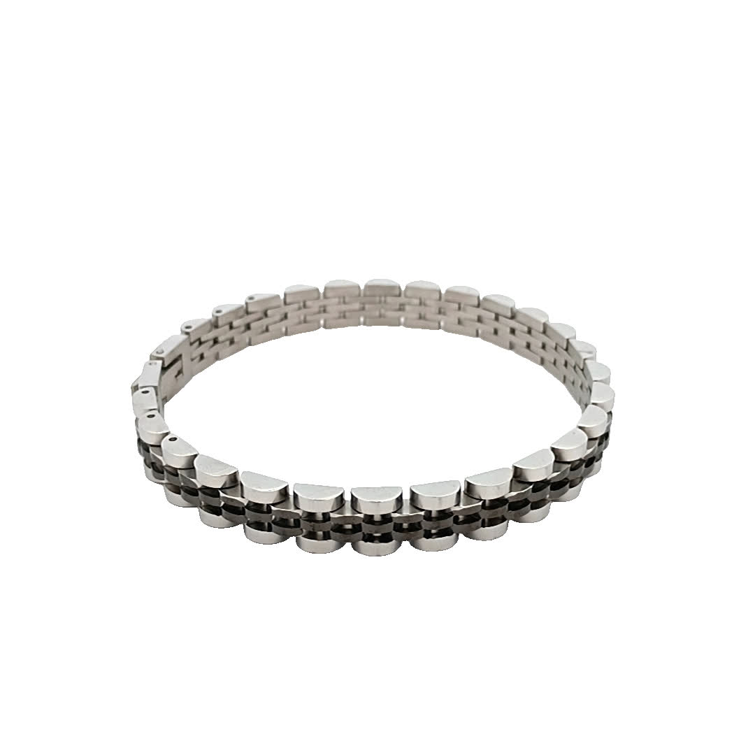 Ta elegancka posrebrzana bransoletka wyróżnia się wyjątkowym designem, który łączy nowoczesną estetykę z ponadczasowym urokiem. Wykonana z wysokiej jakości materiałów, idealnie nadaje się zarówno na okazje codzienne, jak i formalne, dodając odrobinę wyrafinowania do każdego stroju.