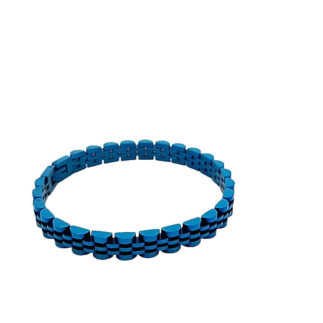 Ta oszałamiająca, żywa, niebieska bransoletka to idealny dodatek do każdego stroju. Jej wyjątkowy design charakteryzuje się naprzemiennymi geometrycznymi kształtami, które pięknie odbijają światło, dzięki czemu jest wyróżniającym się elementem. Niezależnie od tego, czy ubierasz się na specjalną okazję, czy dodajesz odrobinę szyku do swojego codziennego wyglądu, ta bransoletka z pewnością zrobi wrażenie.