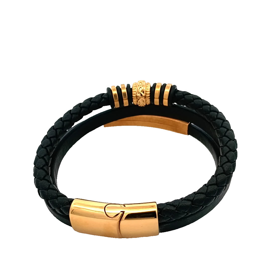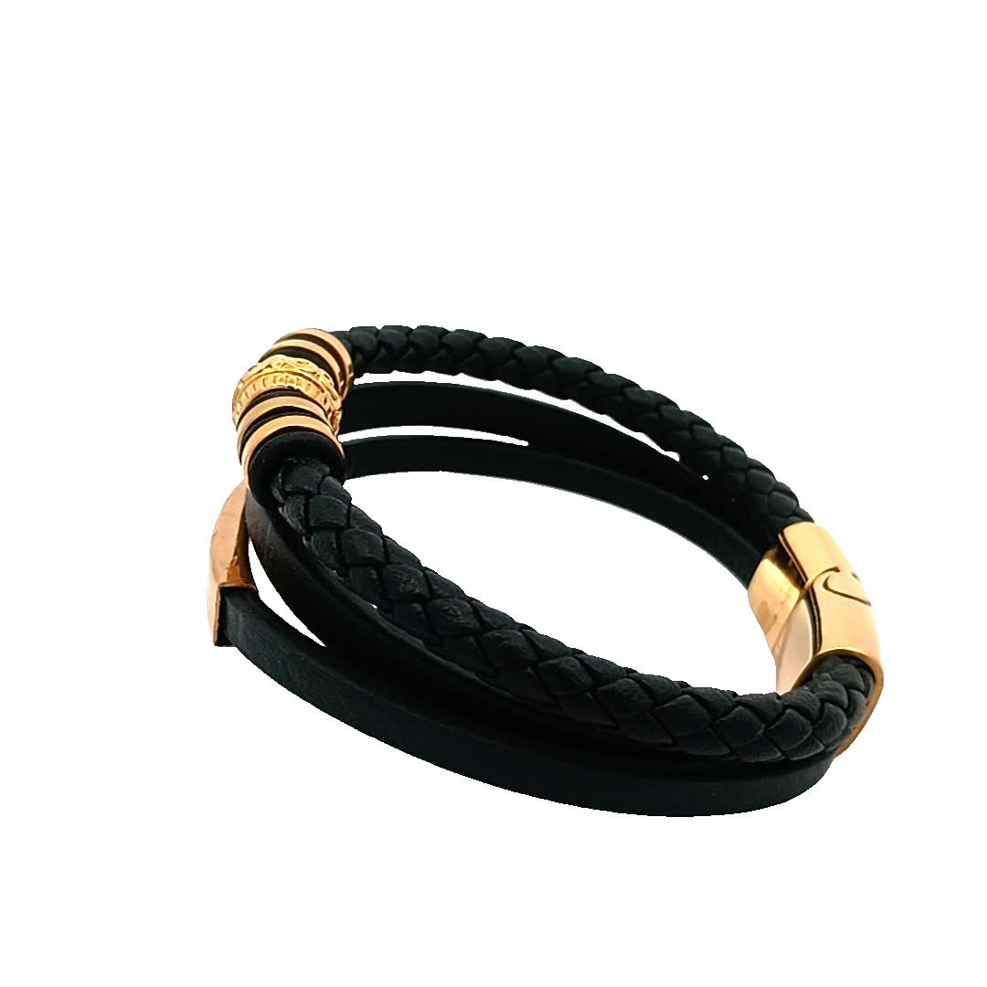 Podnieś poziom swoich dodatków dzięki tej stylowej czarnej skórzanej bransoletce. Dzięki wyjątkowemu plecionemu wzorowi i efektownemu kamieniemu akcentowi bez wysiłku łączy elegancję z nowoczesnym charakterem. Idealna zarówno na okazje codzienne, jak i formalne, ta bransoletka jest niezbędnym dodatkiem do Twojej kolekcji biżuterii.