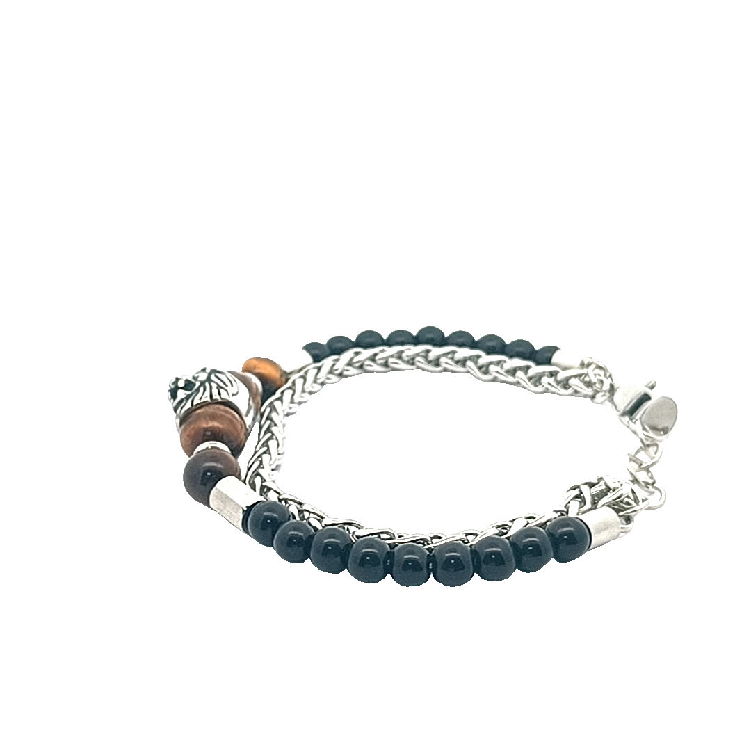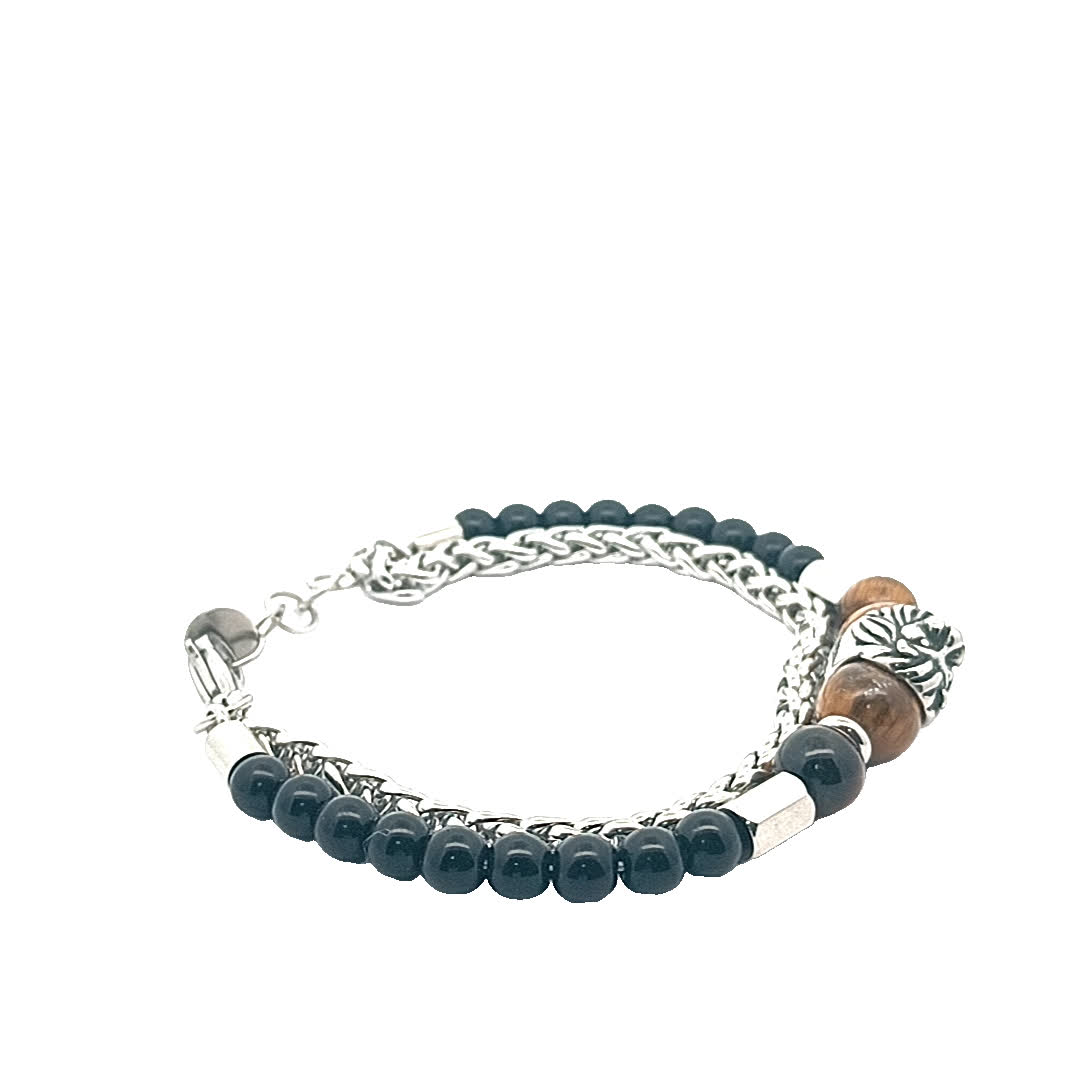 Podnieś poziom swoich dodatków dzięki tej oszałamiającej bransoletce z motywem lwa. Wykonana z połączenia eleganckich czarnych koralików i ciepłych drewnianych akcentów, ma uderzający lew jako centralny element, który symbolizuje siłę i odwagę. Idealna zarówno na okazje codzienne, jak i formalne, ta bransoletka dodaje wyjątkowego akcentu do każdej stylizacji.