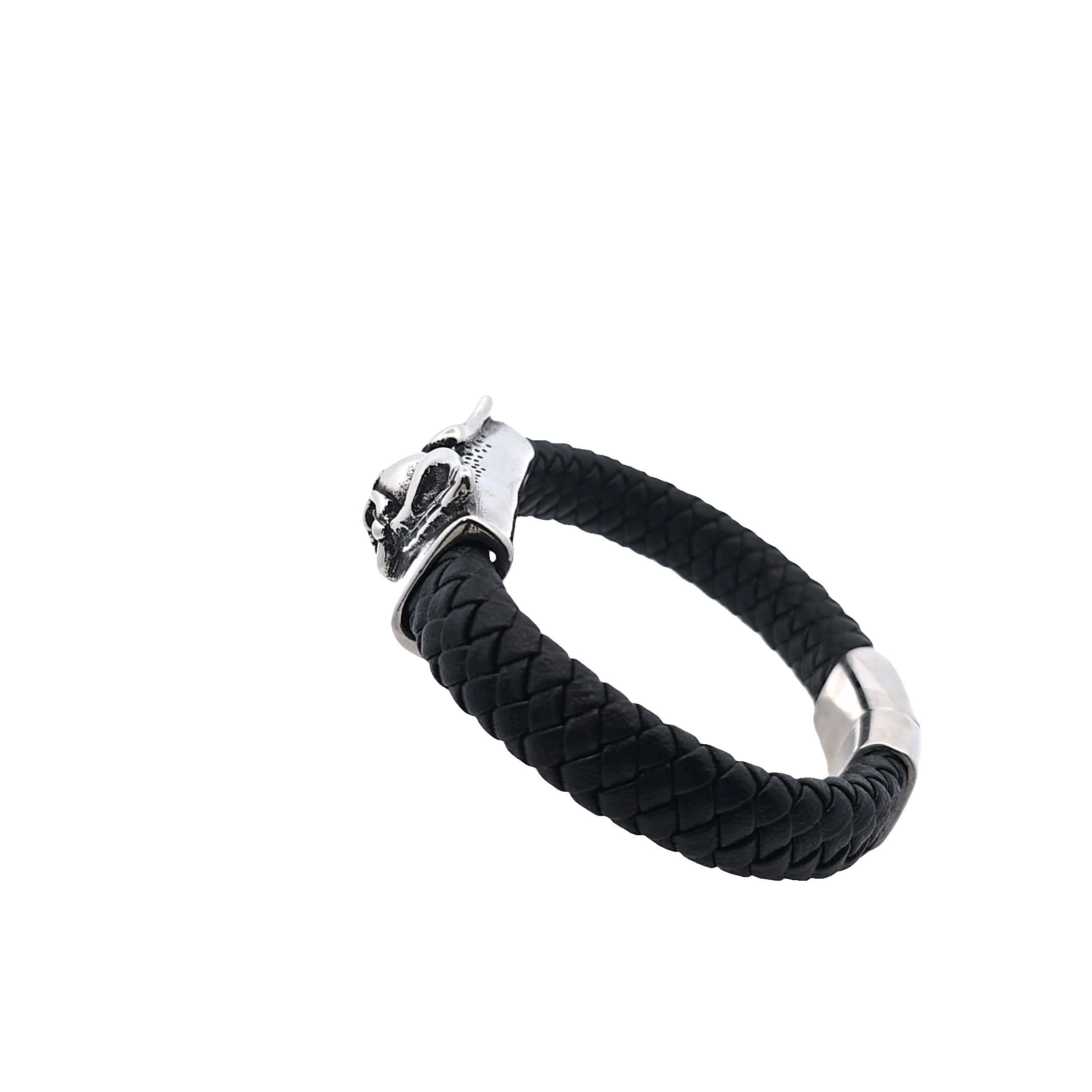 Ta uderzająca bransoletka ma wyjątkowy wzór czaszki ze skrzydłami, wykonana z wysokiej jakości materiałów. Pleciony czarny pasek dodaje odrobinę surowej elegancji, dzięki czemu idealnie pasuje zarówno do swobodnych, jak i odważnych strojów. Noś ją, aby wyrazić swoją odważną osobowość i wyróżnić się z tłumu.