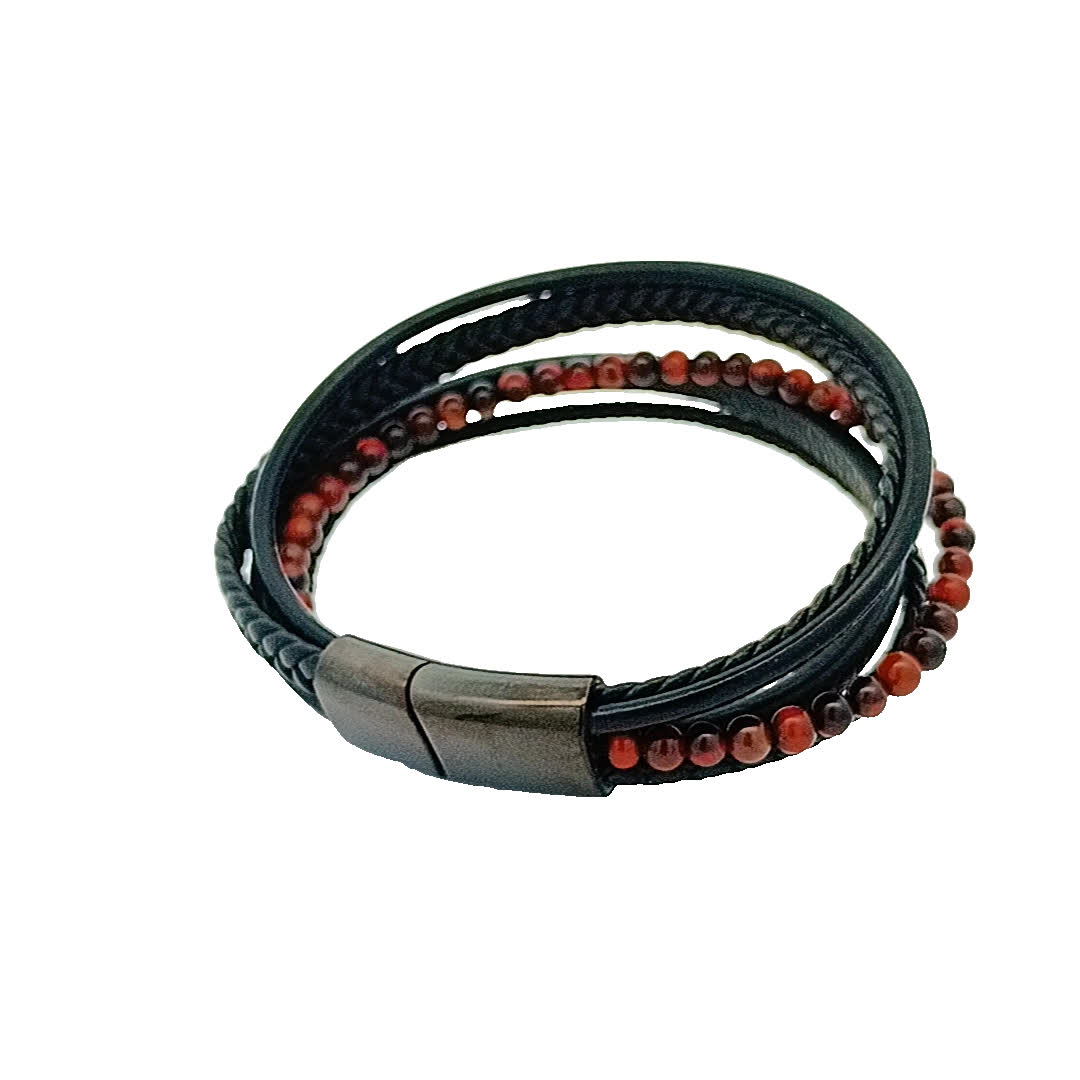 Ta wykwintna, wielowarstwowa skórzana bransoletka łączy elegancję i wszechstronność. Wykonana z plecionej skóry i ozdobiona efektownymi czerwonymi koralikami, dodaje odrobinę wyrafinowania do każdej stylizacji. Idealna zarówno na okazje codzienne, jak i formalne, ta bransoletka jest niezbędnym dodatkiem dla entuzjastów mody.