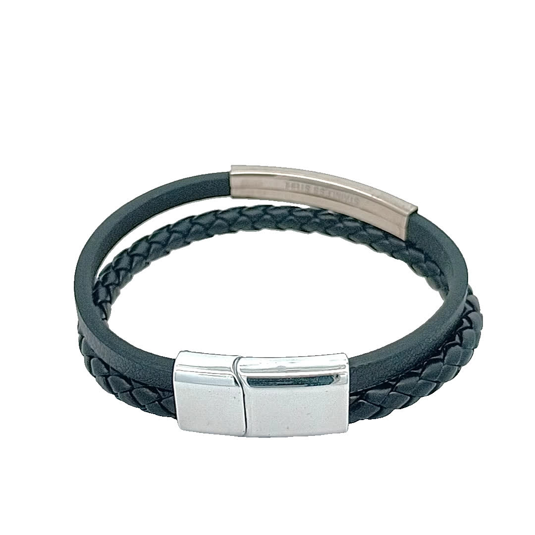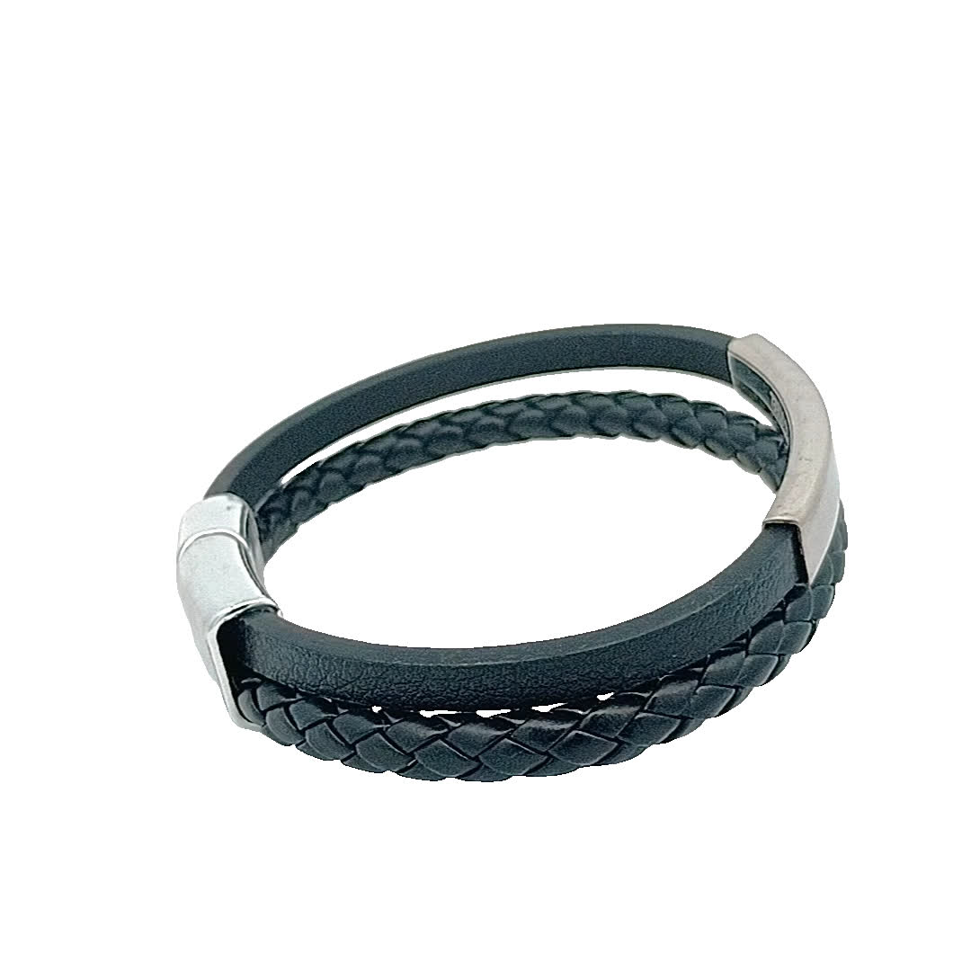 Podnieś poziom swoich dodatków dzięki tym stylowym czarnym skórzanym bransoletkom. Eleganckie plecione wzornictwo i polerowane metalowe zapięcie zapewniają idealne połączenie nowoczesnej elegancji i swobodnego uroku. Idealne do noszenia warstwowego lub solo, te bransoletki są wszechstronnym dodatkiem do każdego stroju.