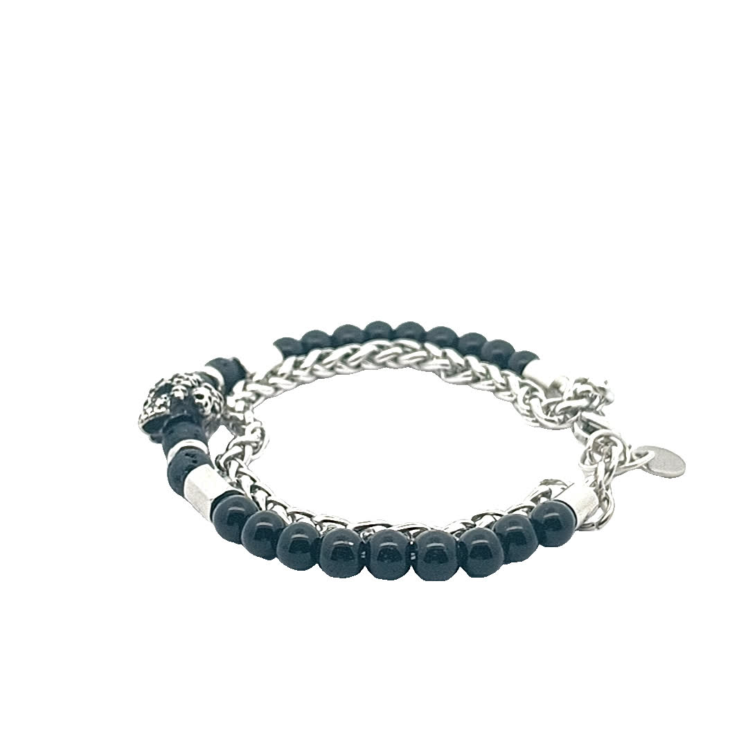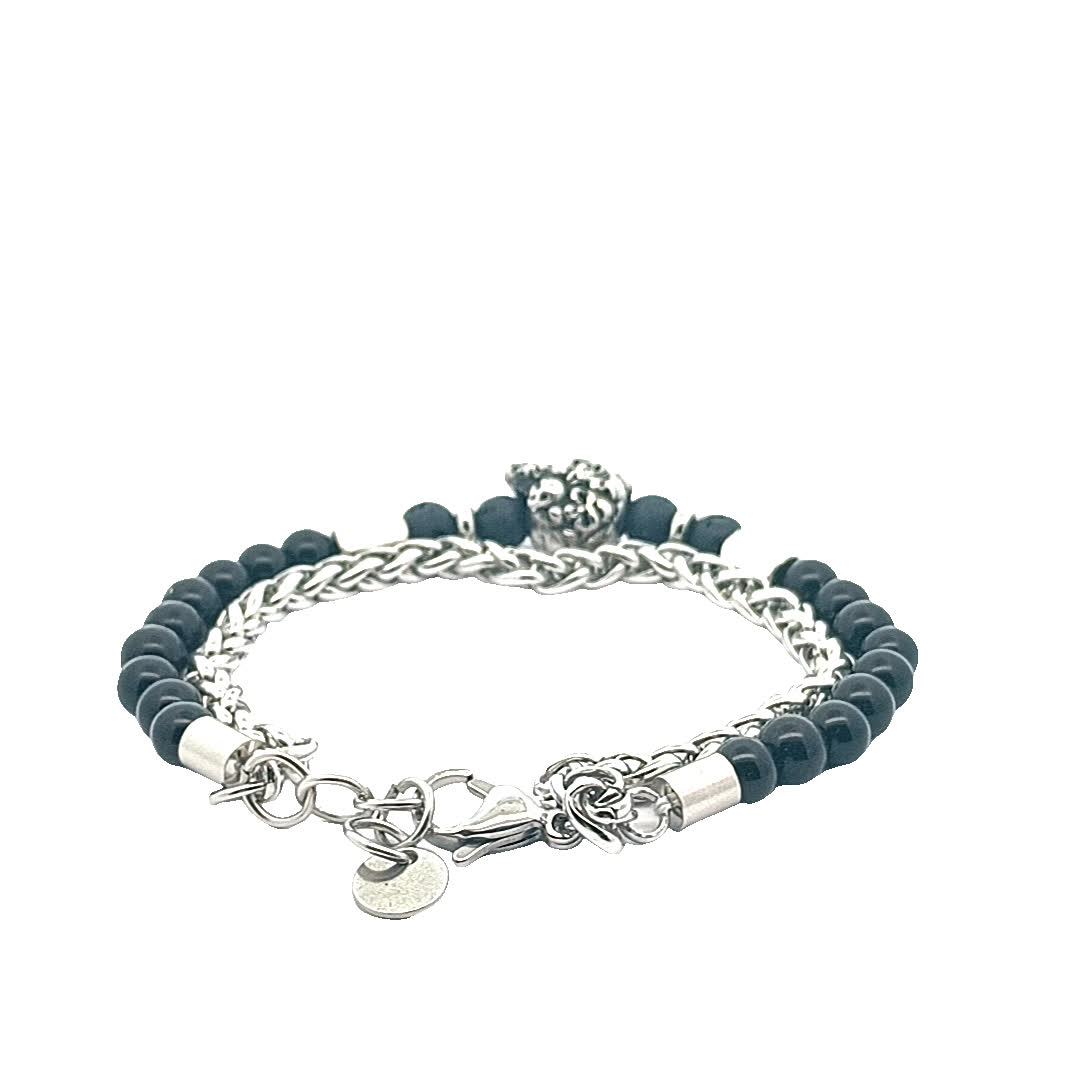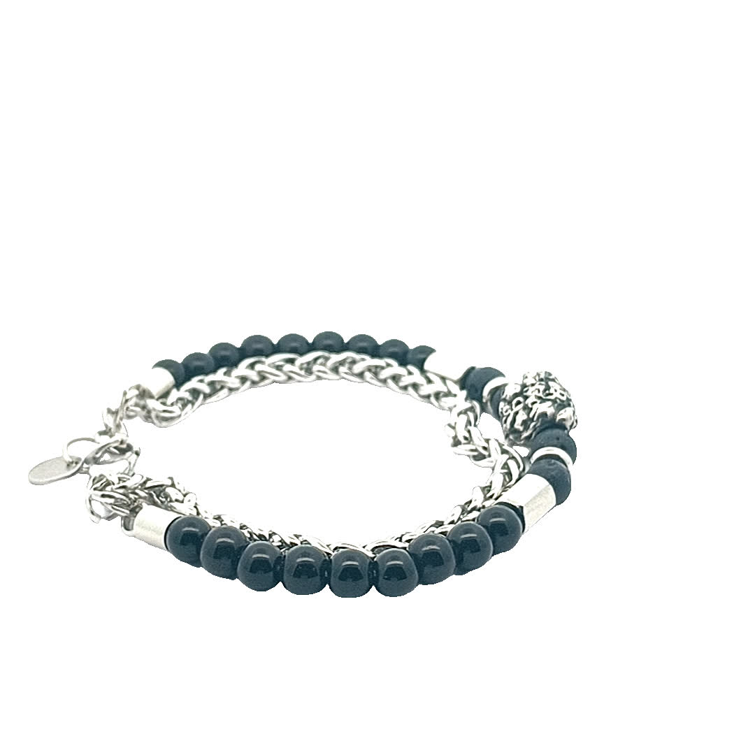 Podnieś poziom swoich dodatków dzięki tej stylowej czarnej bransoletce z koralikami. Ta wyjątkowa kombinacja matowych czarnych koralików i eleganckich posrebrzanych akcentów sprawia, że jest idealna zarówno na okazje codzienne, jak i formalne. Skomplikowany wzór dodaje odrobinę wyrafinowania, dzięki czemu jest niezbędnym dodatkiem do Twojej kolekcji biżuterii.
