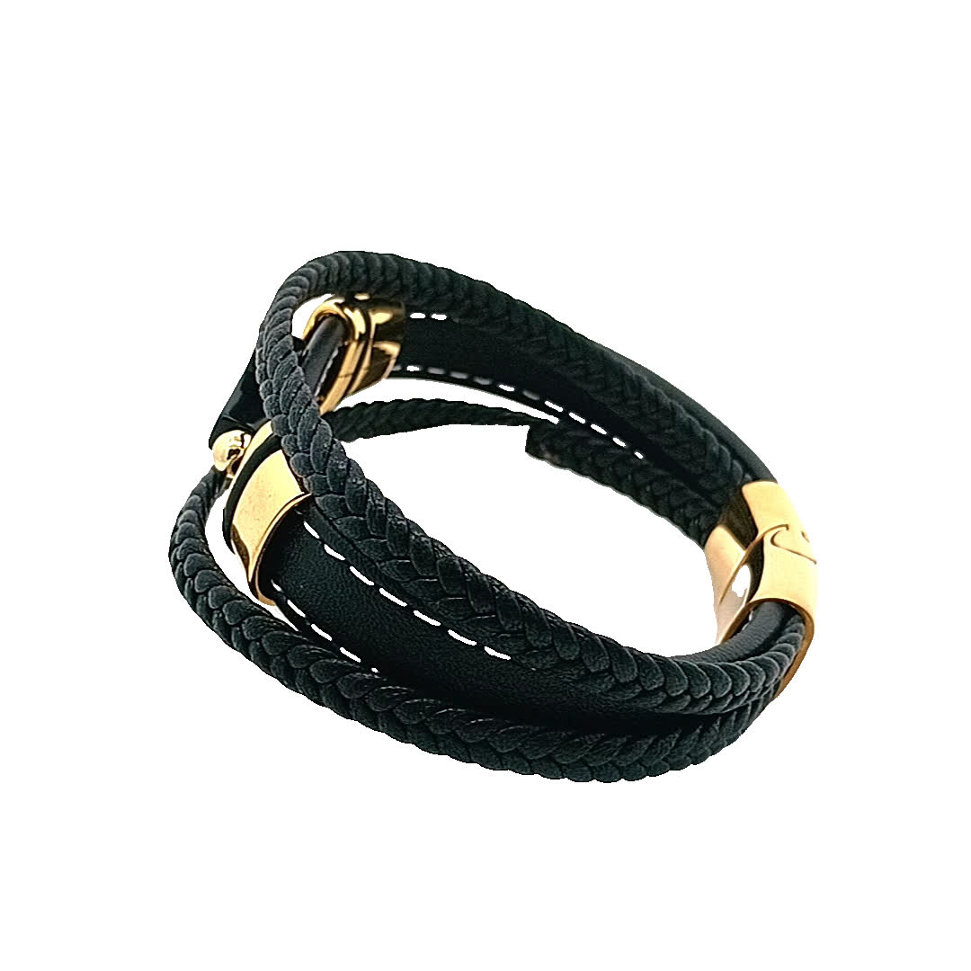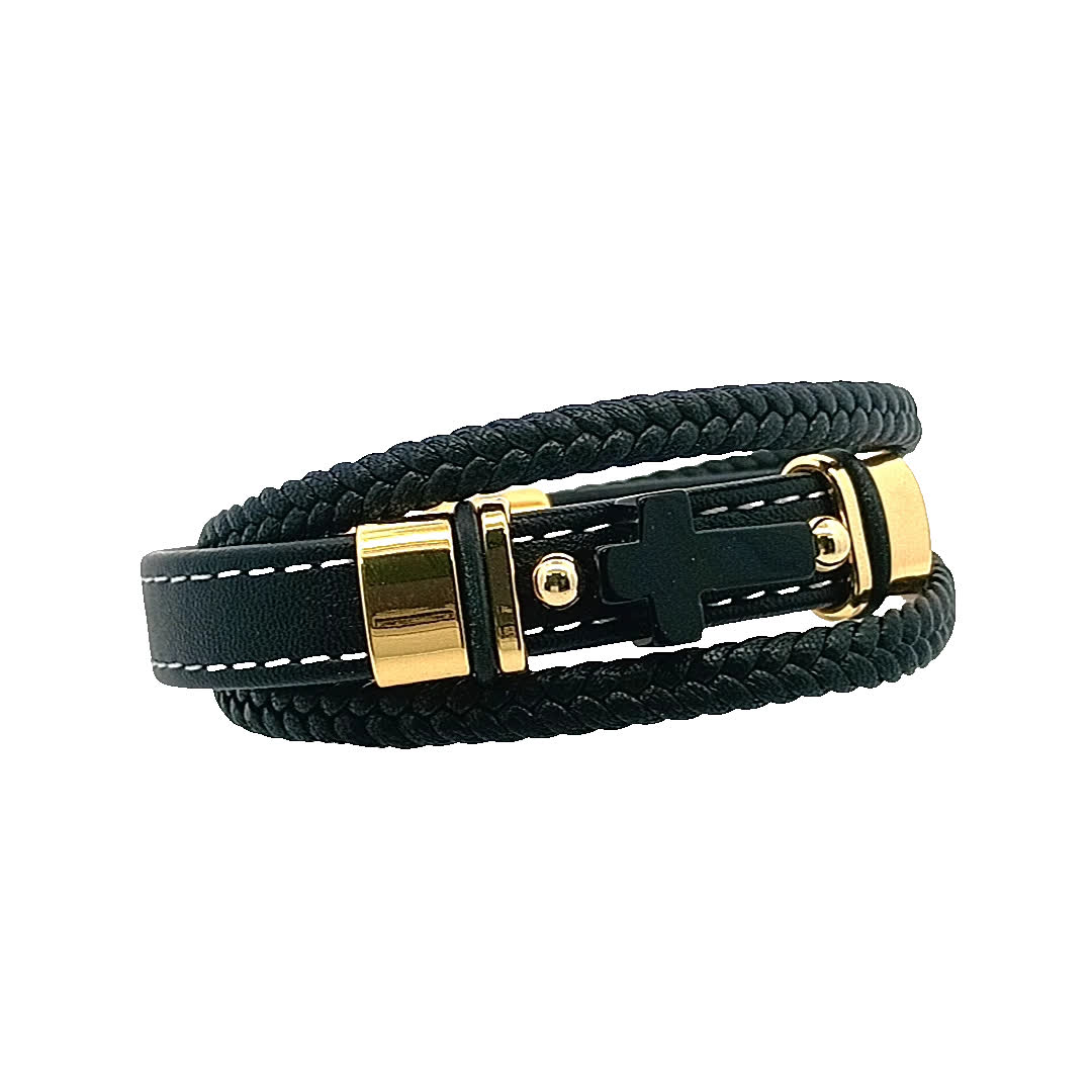 Podnieś poziom swoich dodatków dzięki tej stylowej czarno-złoconej bransoletce. Dzięki wyjątkowemu plecionemu wzorowi i efektownemu krzyżowi w centralnym punkcie, ten element jest idealny zarówno na okazje codzienne, jak i formalne. Jego wszechstronny wygląd sprawia, że jest idealnym dodatkiem do każdej kolekcji biżuterii.